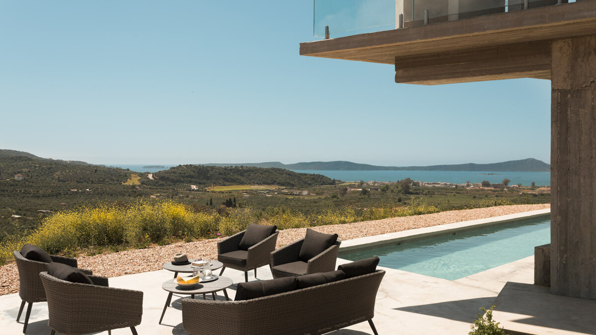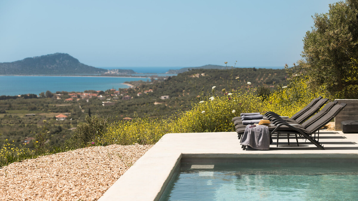 Cette extraordinaire villa privée surplombe la baie de Navarino.
