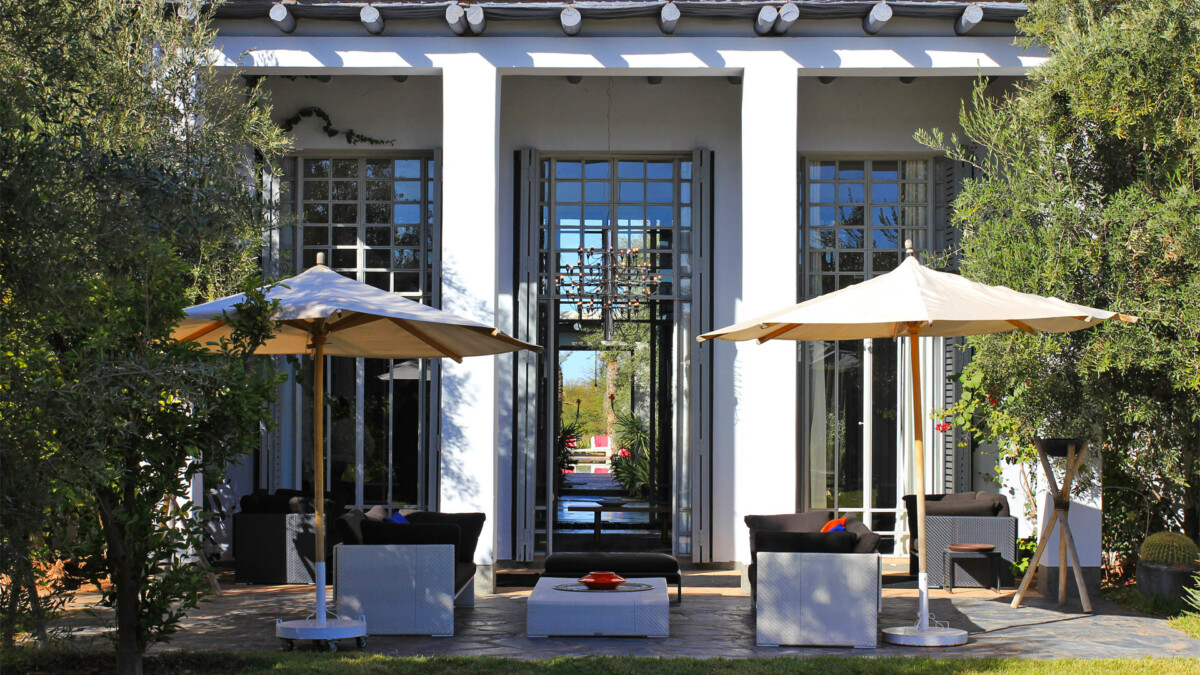 Les patios et les grandes baies créent une transition parfaite entre les volumes de la maison baignée de lumière et l’extérieur qui offre une splendide perspective d’un bout à l’autre de la propriété.