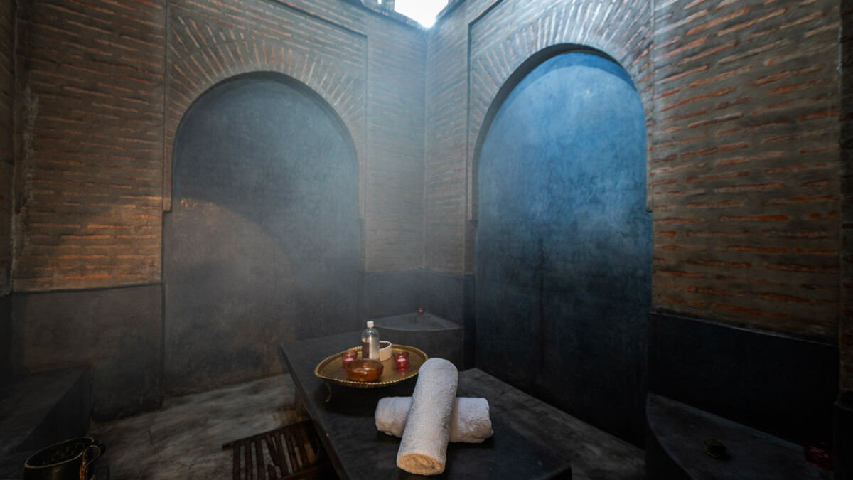 Le hammam réalisé dans la plus pure tradition, chauffé au bois, avec son puits de lumière qui invite naturellement à la relaxation, lieu de détente par excellence qui vous permet de recevoir tous les soins orientaux que vous désirez (gommages, enveloppements au rassoul, massages…)