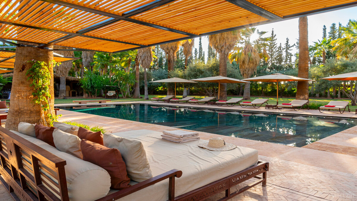 À 25 minutes de Marrakech et à seulement 15 minutes du Royal Golf et d’Amelkis Golf Resort, sur la route menant au village de Sidi Abdallah Ghiat, la Villa Ozin est une belle villa de luxe avec un personnel de 8 personnes.