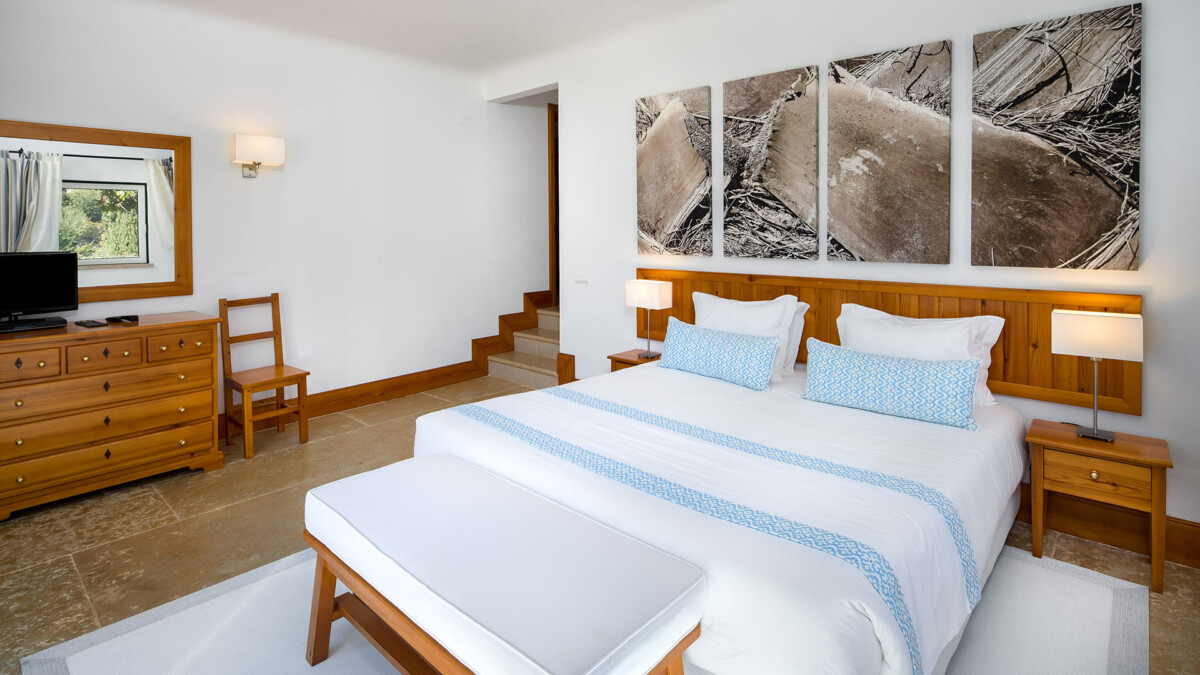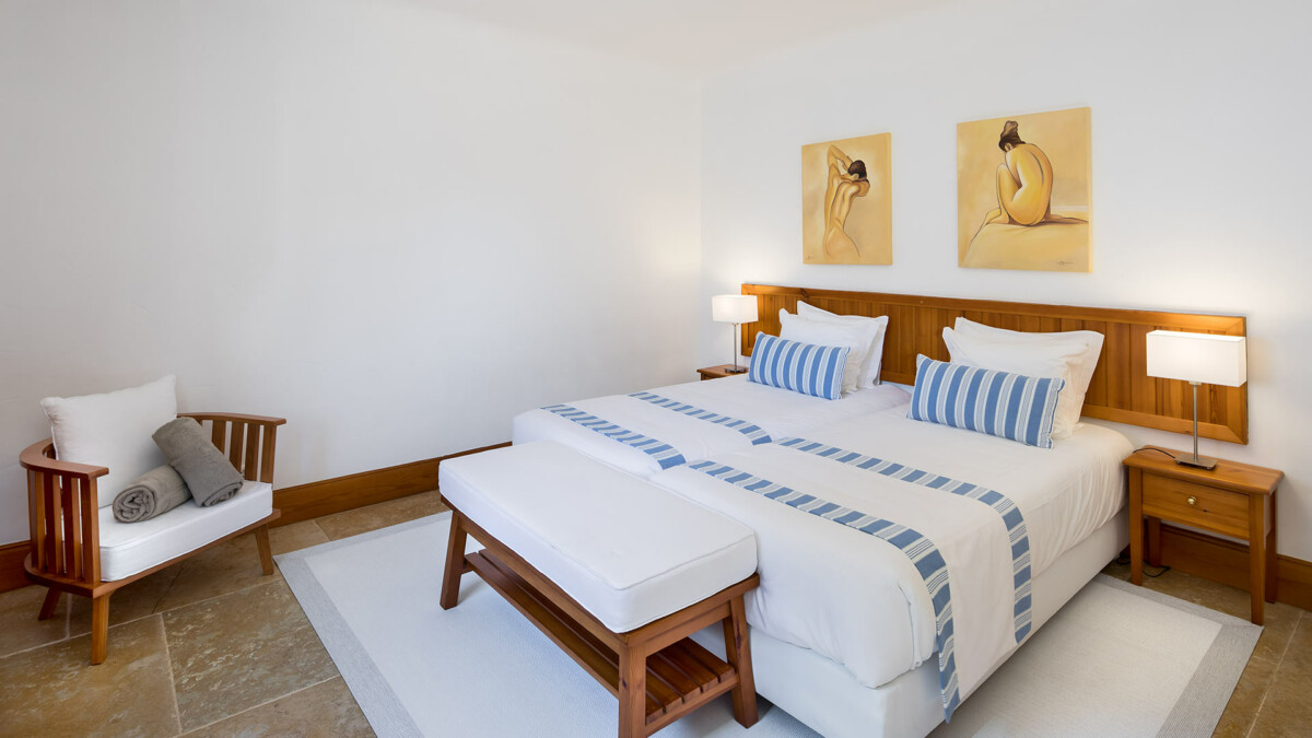 Prenez la Villa Palmeira, par exemple, qui peut accueillir jusqu’à six personnes. Conformément à l’architecture portugaise traditionnelle, c’est une magnifique maison de bas niveau blanche et bleu royal avec un toit de tuiles en terre cuite chaleureux. L’immense cuisine de campagne est idéale pour rassembler tout le monde autour du petit-déjeuner tout en préparant la journée et la salle de jeux a des portes coulissantes en verre qui s’ouvrent directement sur la terrasse de la piscine, où il y a un barbecue et une vue fascinante sur la montagne.
