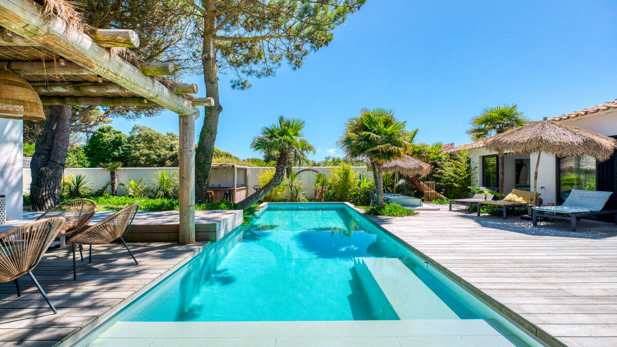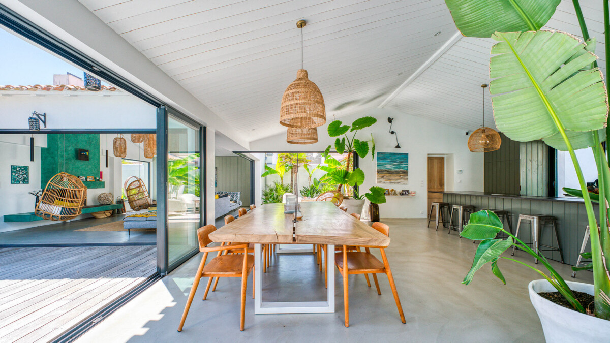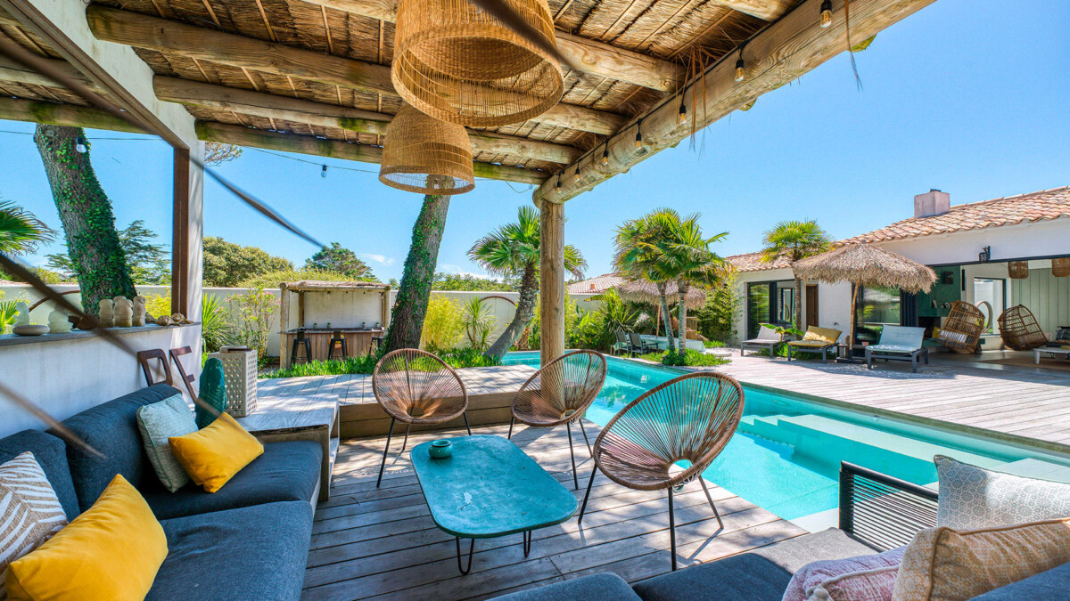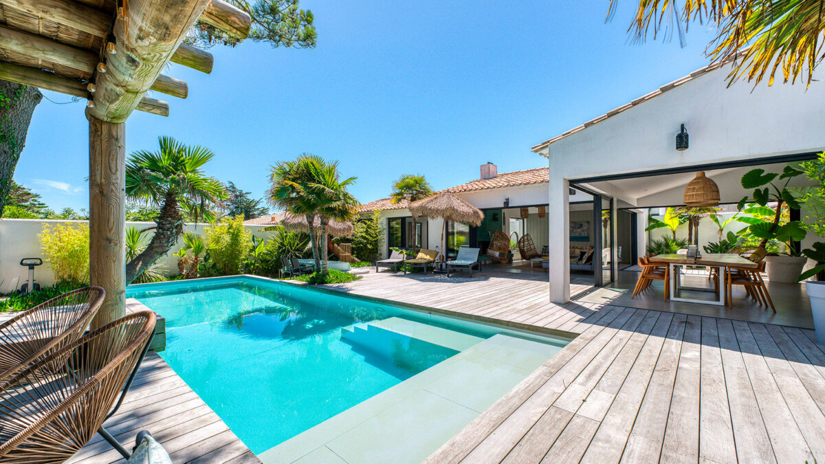 Découvrez cette belle villa construite en 2021, idéalement située à Sainte Marie de Ré, dans un quartier des plus agréable. Offrant un confort moderne et une exposition remarquable, elle est parfaite pour des séjours de détente en bord de mer et à proximité des bois. Cette demeure propose jusqu’à six chambres, dont quatre suites spacieuses et une annexe indépendante avec deux chambres. Profitez d’espaces intérieurs lumineux grâce à ses baies vitrées à galandage, et détendez-vous dans le cadre enchanteur de ses extérieurs, avec un jacuzzi et une piscine chauffée. La Villa Perle de Coco est parfaite pour de délicieuses vacances à l’Ile de Ré.