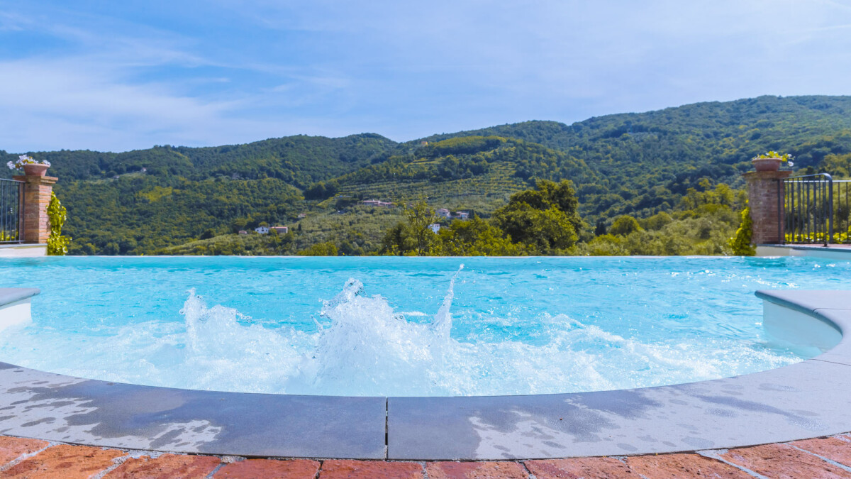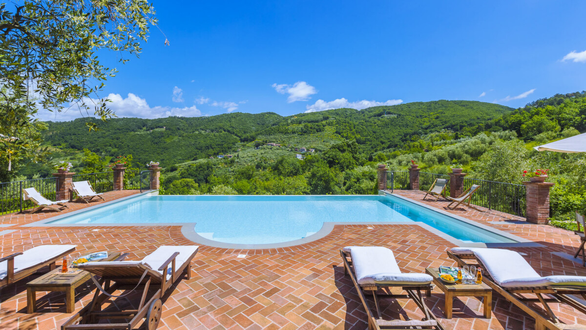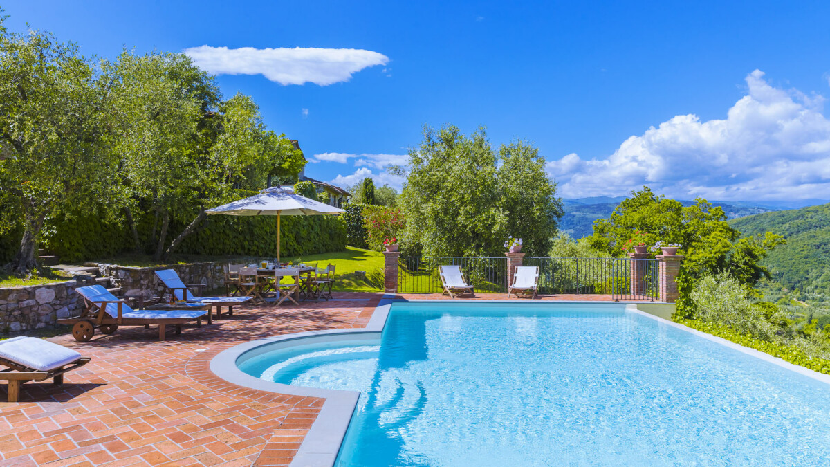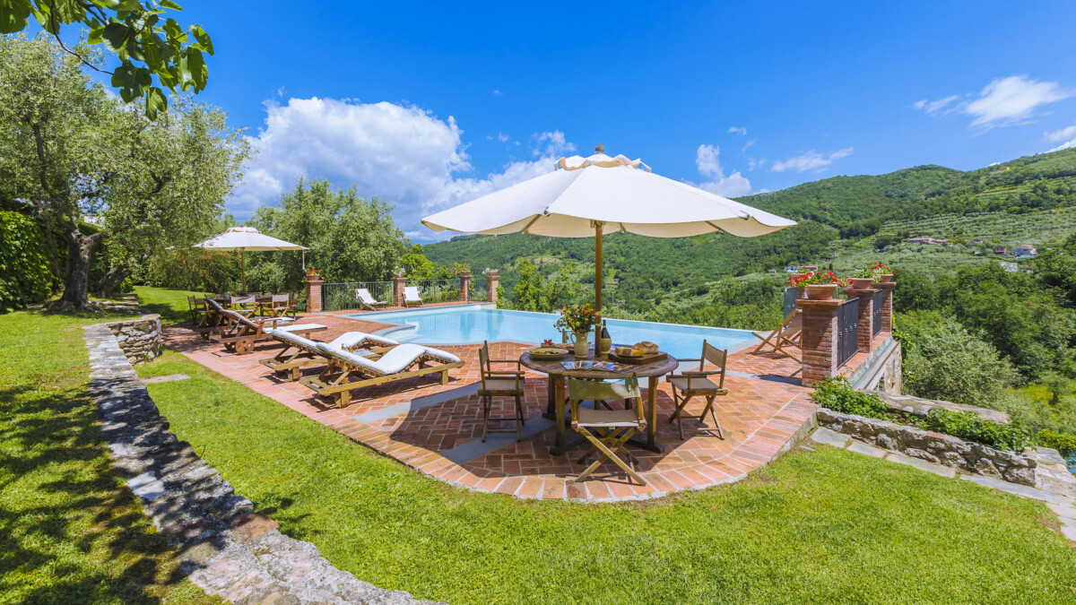 La piscine, 6x12m et la profondeur de 1.35m est réservée exclusivement aux clients de la Villa Pistoia. Elle est située sur une terrasse naturelle à quelques mètres au-dessous du niveau de la villa et offre une belle vue sur la vallée.