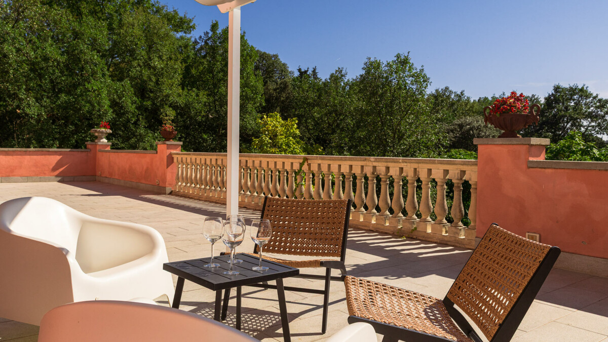 They can also appreciate the various terraces and loggias, the summer kitchen and the charming herb garden.