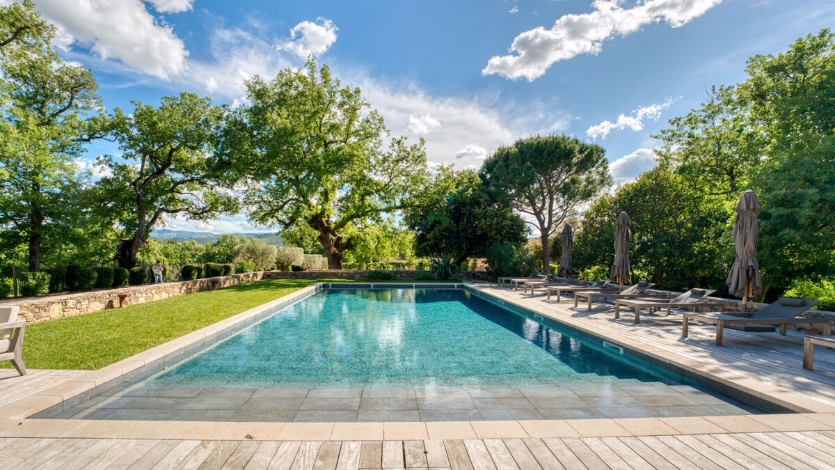 Outside, the beautifully landscaped gardens harmonize with nature, amidst fragrant olive trees and garrigue. Three private terraces welcome you for moments of relaxation and wonder, accompanied by a heated pool (15 x 7m, Min depth: 1.20m, Max depth: 1.50m), surrounded by sun loungers and parasols, offering a haven of freshness under the Provençal sun. The fully equipped pool house invites you to extend these moments with an al fresco meal in the shade of jasmine. You also have access to a shared tennis court. The villa also has 4 parking spaces.