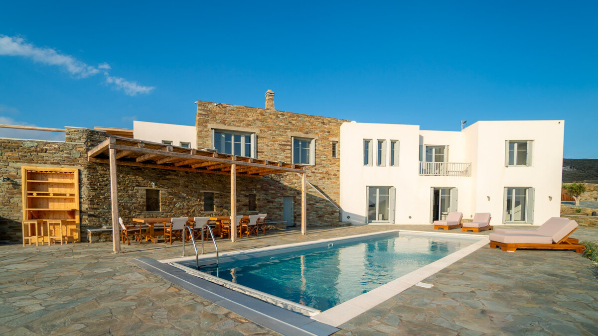 La Villa Pounta Kochyli est une belle propriété située au nord d’Andros, en bordure d’une falaise et à quelques mètres de la mer. Cette villa offre une vue imprenable sur l’océan depuis chaque espace intérieur et extérieur, créant une atmosphère de sérénité absolue. Avec un accès direct à la mer par un chemin privé et une piscine qui se fond à merveille dans l’horizon, cette demeure vous offre un sanctuaire idéal pour déconnecter. Idéale pour les familles ou les groupes d’amis, cette villa combine à la perfection intimité, style et beauté naturelle, promettant une expérience de vacances inoubliable en Grèce.