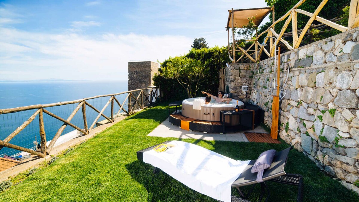Les jardins extérieurs et la pergola naturelle des citronniers encadrent le magnifique littoral et un solarium équipé d’un jacuzzi pour se relaxer dans une tranquillité totale dans l’un des plus beaux endroits du monde