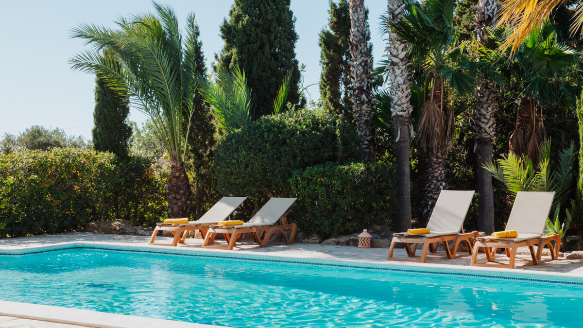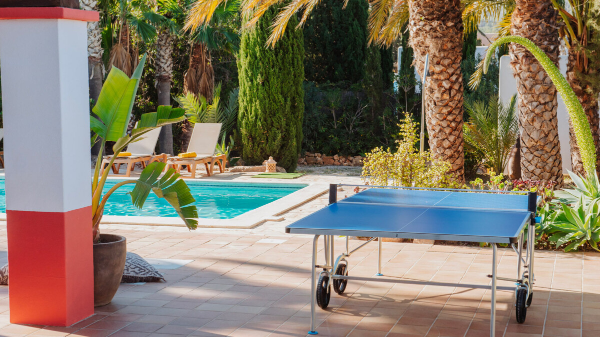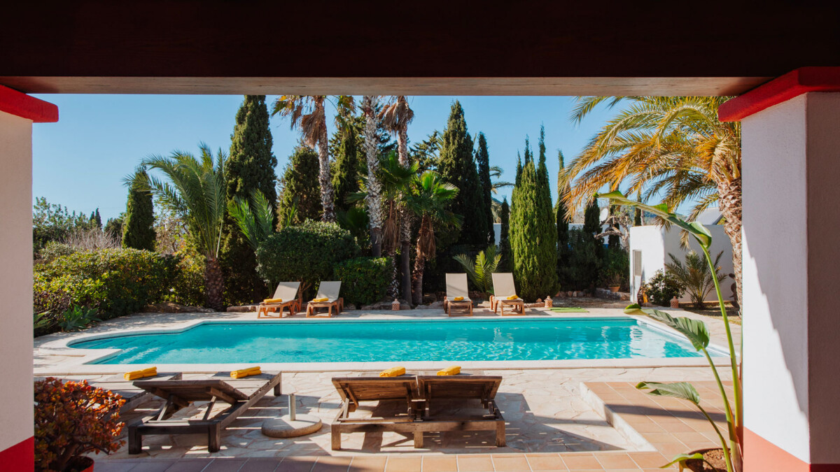 La maison déploie ses charmes extérieurs avec élégance et finesse, sur un terrain de 2500m2 (entièrement clôturé). Le jardin, oasis de verdure, se prête à la rêverie et à la détente, tandis que la belle piscine (9 x 4.5m – Profondeur : de 0.8 à 2m) invite à la fraîcheur des plongeons sous le soleil d’Ibiza.