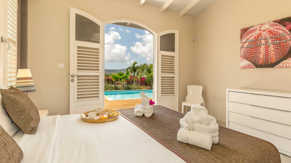 L’intérieur est composé de 4 chambres climatisées et particulièrement spacieuses et de trois salles de bain. La suite parentale avec lit queen size et salle de bain privée s’ouvre sur la terrasse et vous offrira de merveilleux moments.