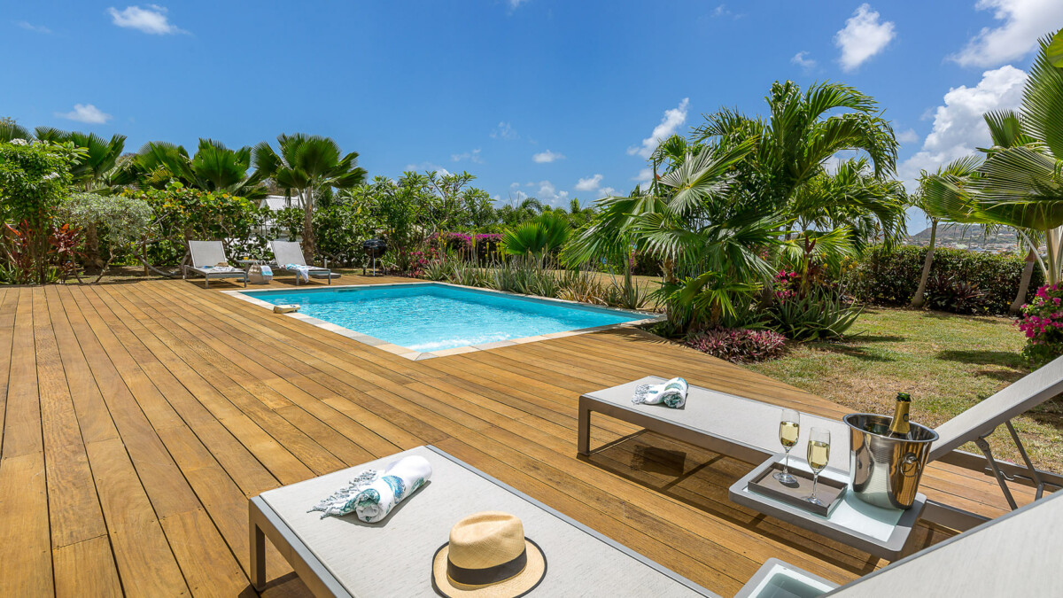 Le jardin tropical vous invitera à savourer d’agréables moments autour d’un barbecue ou installés confortablement dans le salon extérieur. Votre piscine et ses bains de soleil seront la garantie de vos vacances idéales.