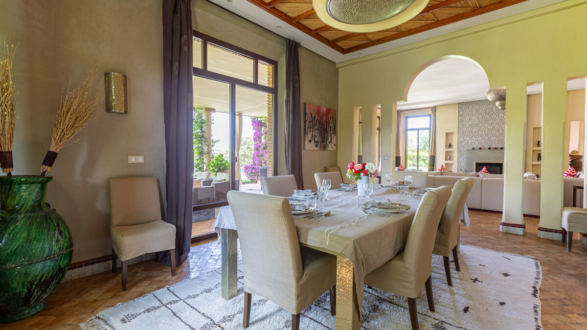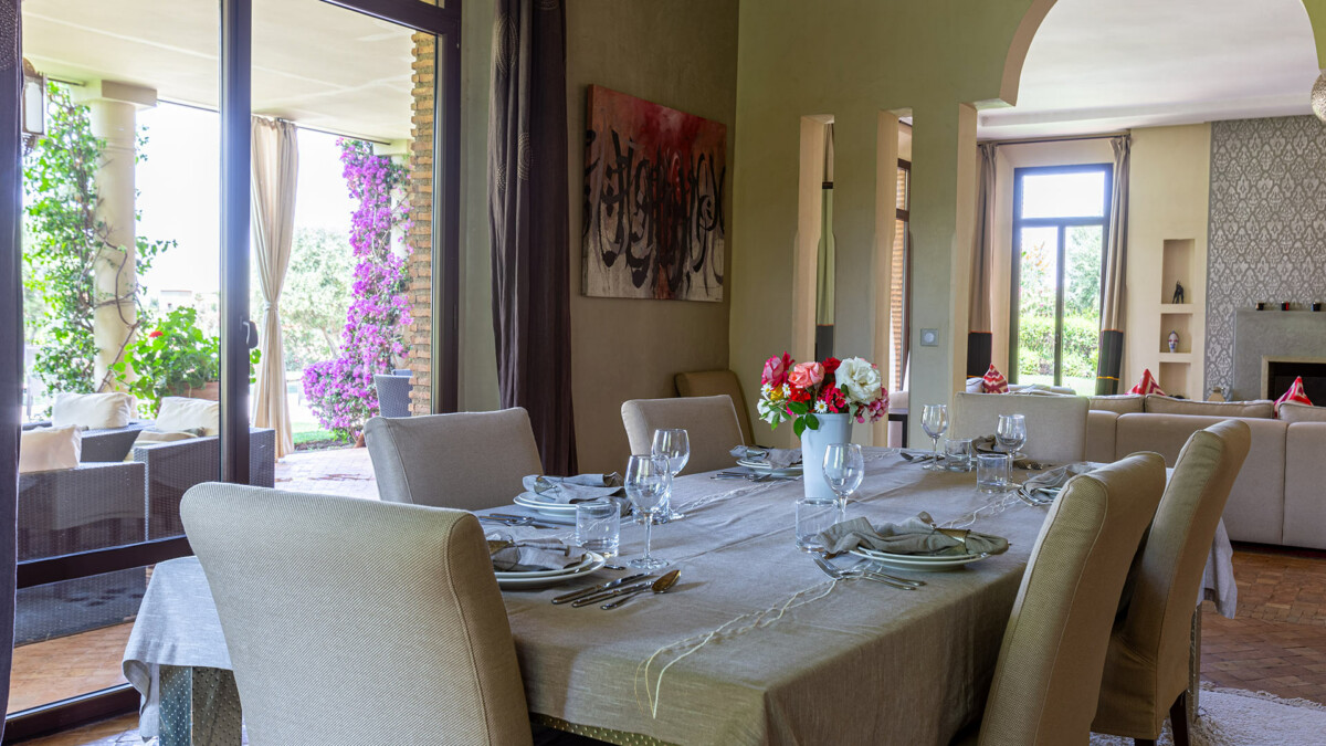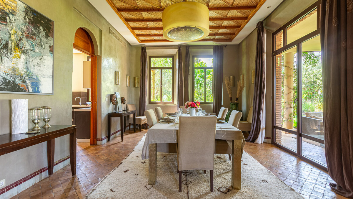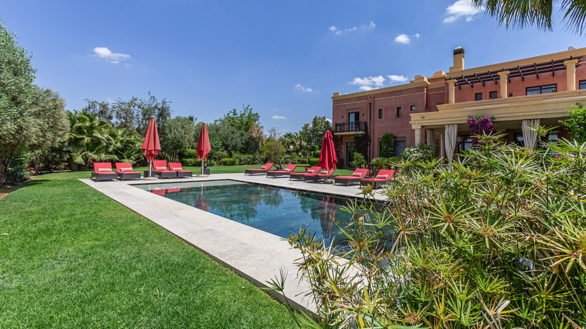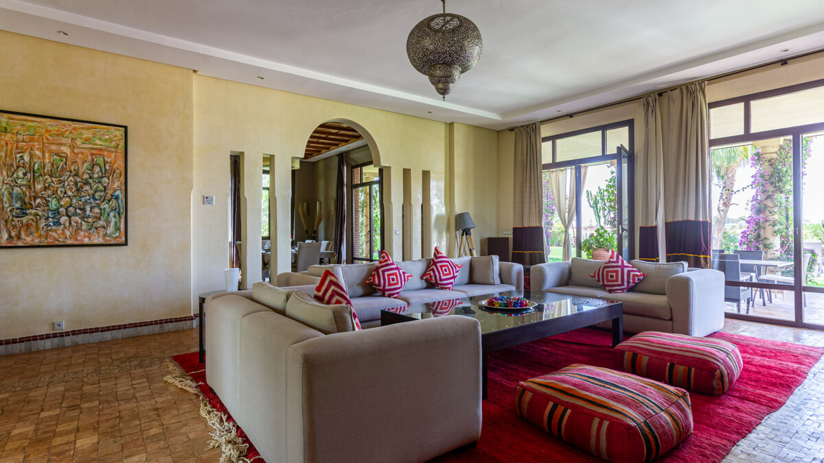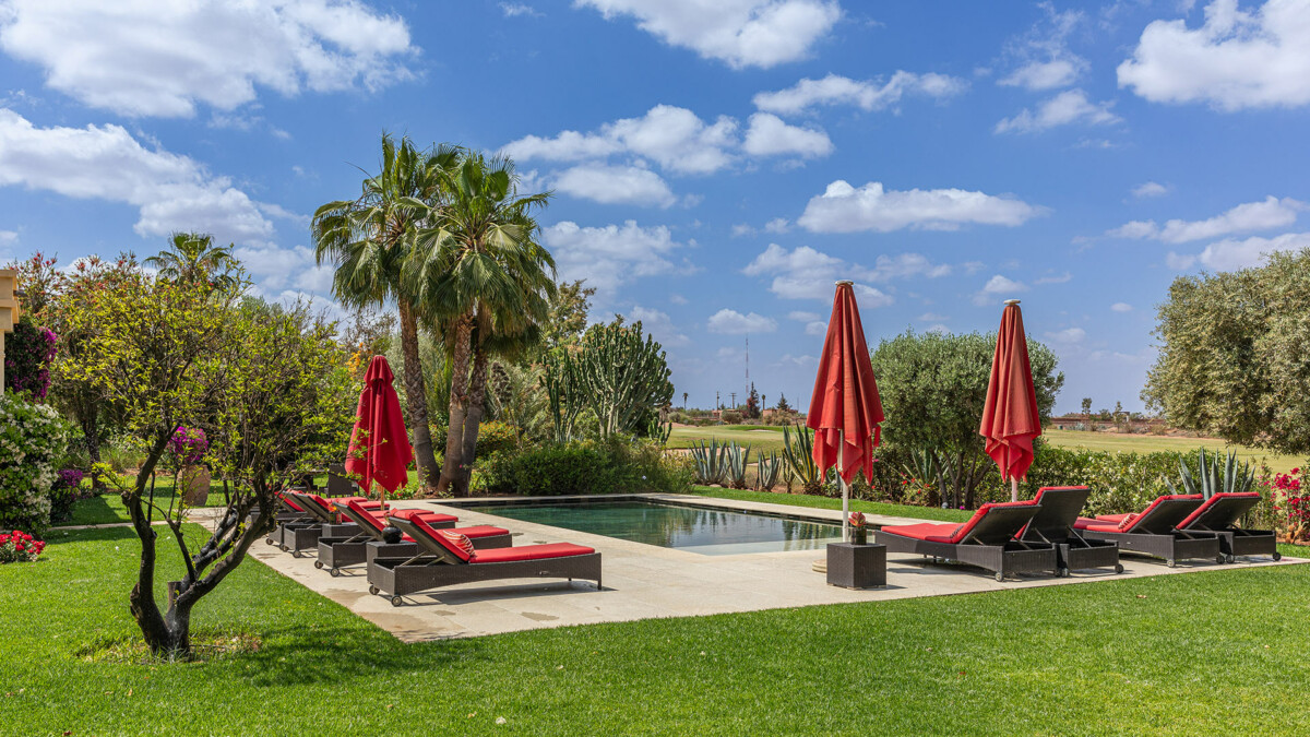 Découvrez la majestueuse Villa Rojo, nichée au cœur du domaine privé du golf de Samanah au sud de Marrakech, célèbre pour son parcours dessiné par Jack Nicklaus. Bénéficiant d’une architecture Arabo-Andalouse élégante, cette villa de plus de 500 m² offre une vue imprenable sur le golf. Conçu pour accueillir jusqu’à 10 personnes avec ses 5 chambres doubles, ce havre de paix est idéal pour des vacances mémorables en famille ou entre amis. Avec sa superbe exposition sud/sud-ouest, profitez également du climat ensoleillé de Marrakech au sein d’un jardin magnifiquement entretenu, et d’une piscine pouvant être chauffée.