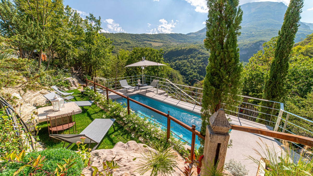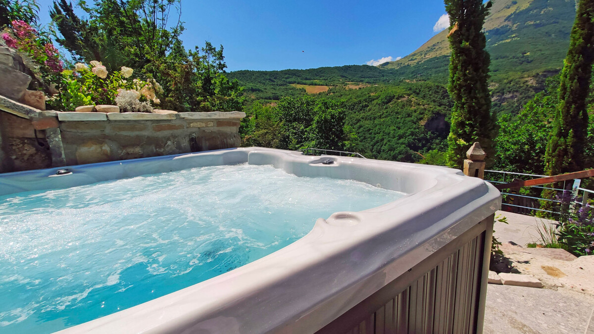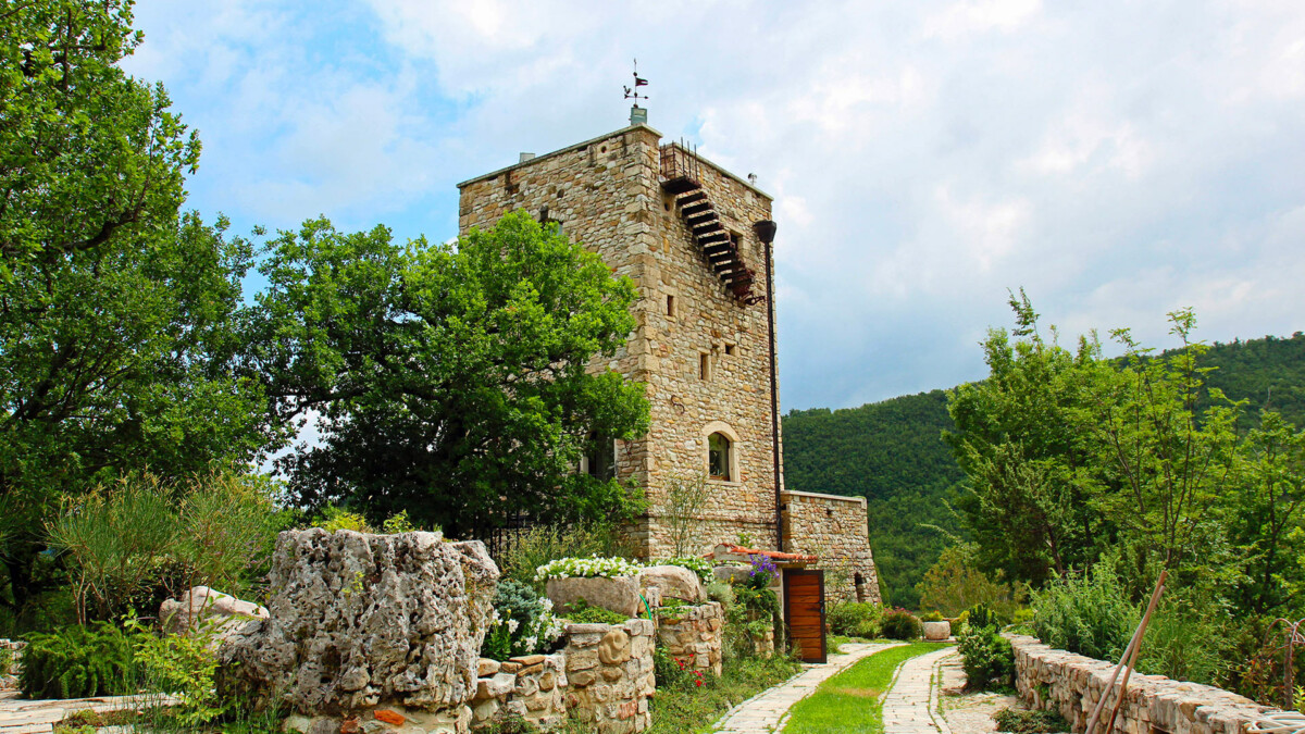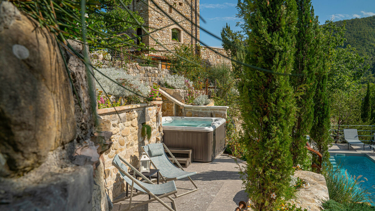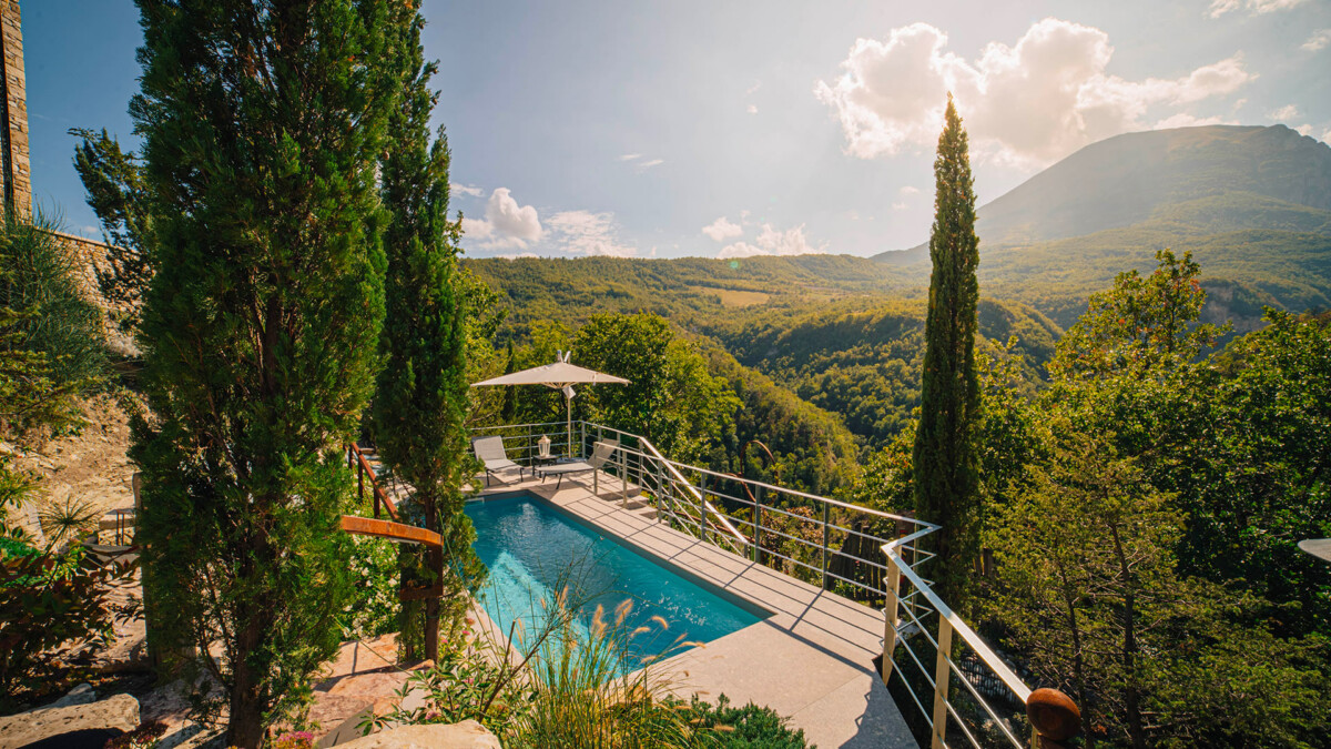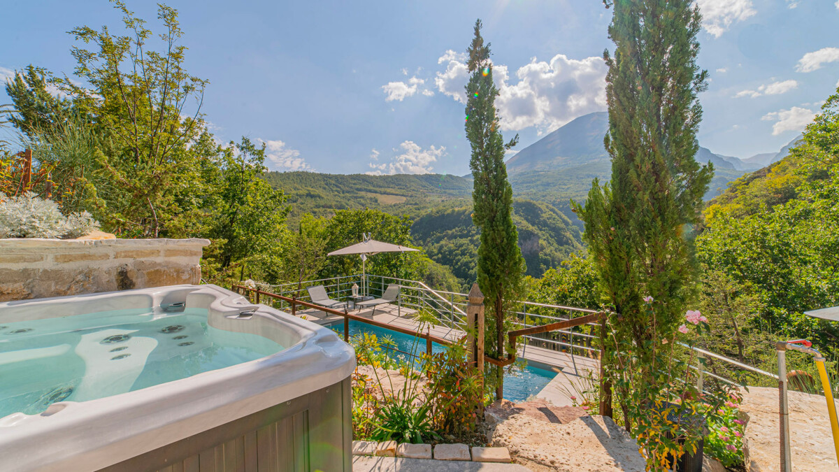 Villa Rossano was built in 1080 (A.D.) as a lookout tower to defend the Fermo area. This beautiful property, is located in an enchanting setting, nestled inside the Sibillini mountains natural reserve, between Monte Sibilla, the gorge of Infernaccio and the hilltop town of Montefortino. This luxury villa with private pool and jacuzzi, can accommodate up to 9 people. It is an ideal place for those in search of privacy and relaxation in a unique setting.