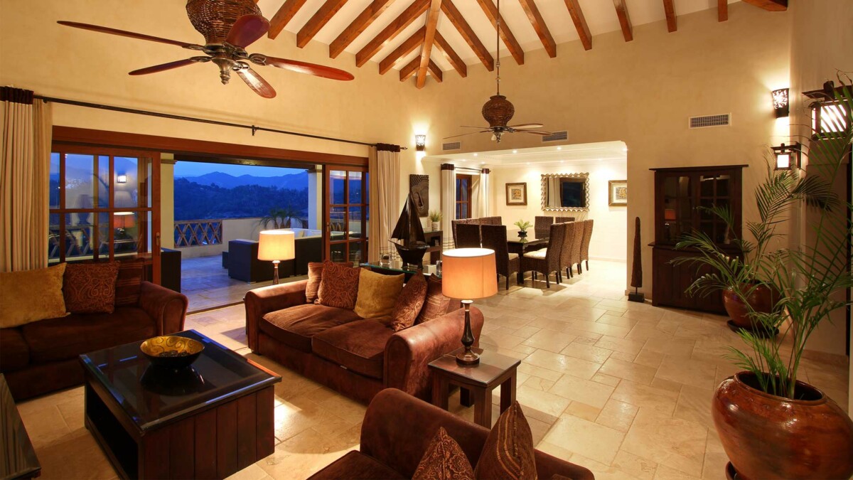 – Bedroom 1: Main Villa, First Floor – King bed, high vaulted ceiling, dressing area, sitting area, large terrace and balcony with view and large luxury ensuite featuring exquisite stone and marble, large walk-in rain & rail shower and separate double-ended bath.