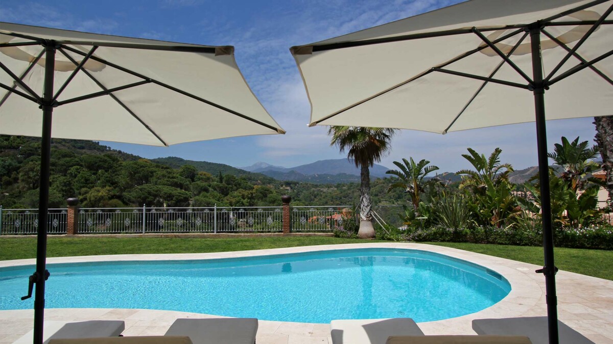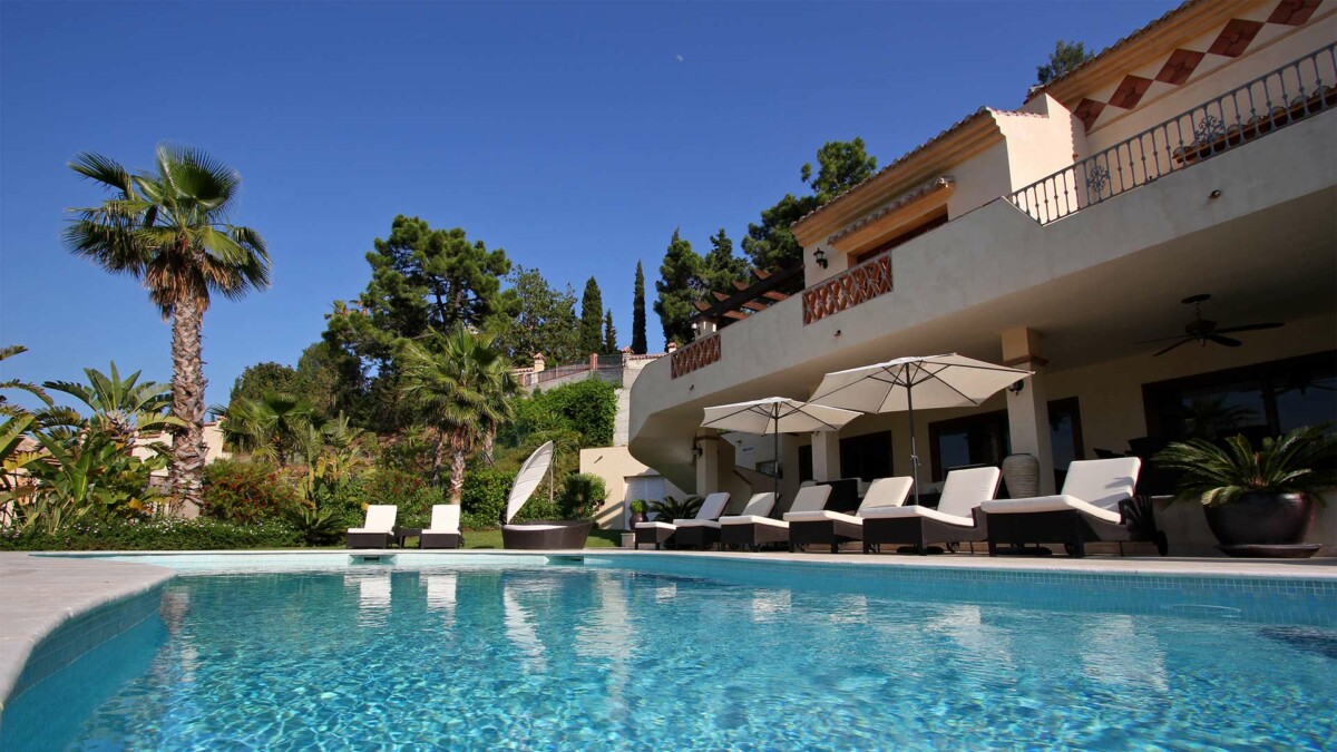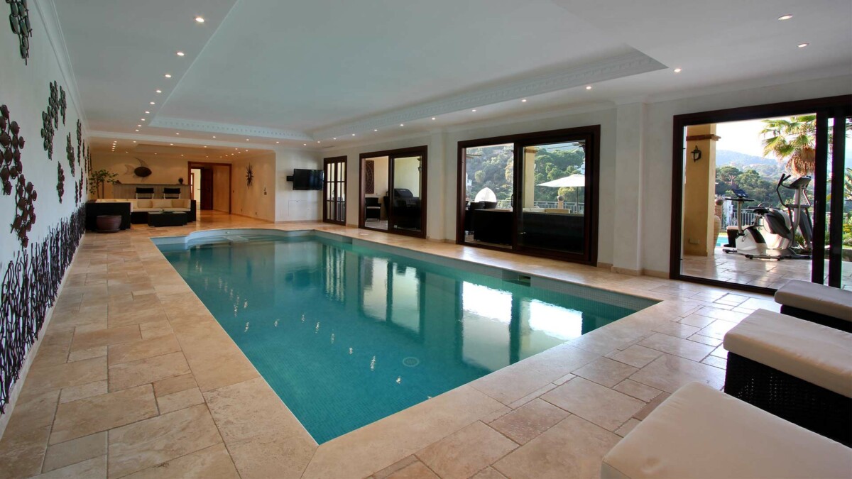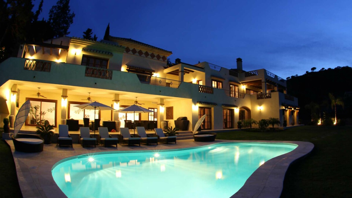Breathtaking panoramic views from all 7 bedrooms, all living areas and the grand outdoor pool area await you, at this exclusive hilltop villa. Set within beautifully landscaped tropical gardens in a private West Marbella estate, just 10 minutes to Puerto Banús, the newly constructed villa features high speed internet, air conditioning throughout, and a heated indoor pool, bar & spa complex, with sauna and Jacuzzi. The luxurious ensuite bedrooms can comfortably accommodate up to 15 people.
