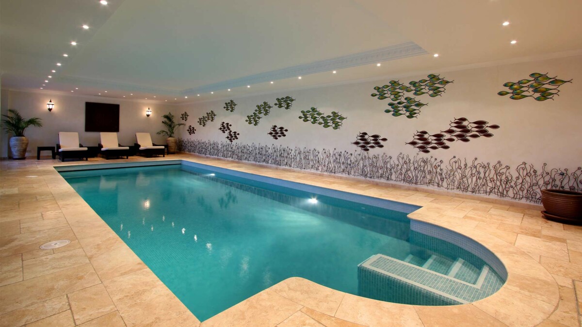 All bedrooms have private ensuite bathrooms, except in the apartment where the private bathroom is shared. Each bathroom is spacious and luxurious, and finished with the finest Italian marble, chrome towel rails, and a range of soft cotton luxury bath and hand towels. Three bathrooms have both large showers, containing both an overhead rain shower as well as a wall shower. They also have sunken double-ended baths for a long relaxing soak. All bathrooms have large walk-in showers, with both rain and wall showers. There are also two separate guest toilets, plus a further bathroom and changing area within the indoor heated pool and spa area