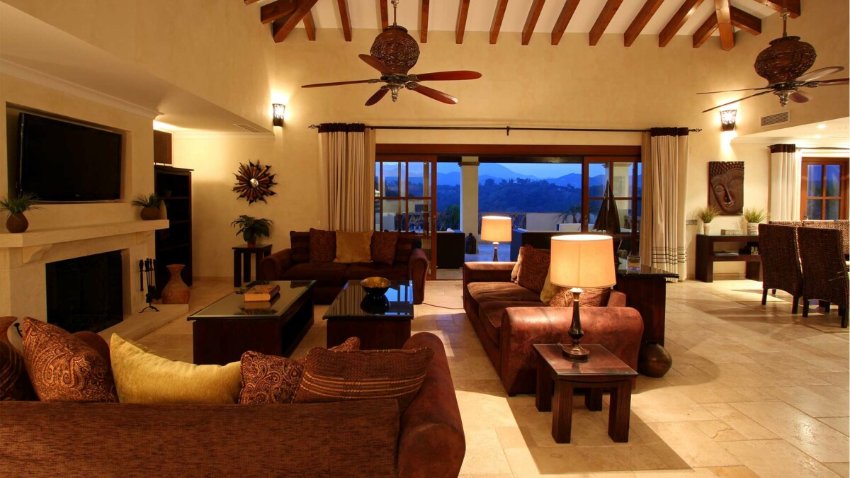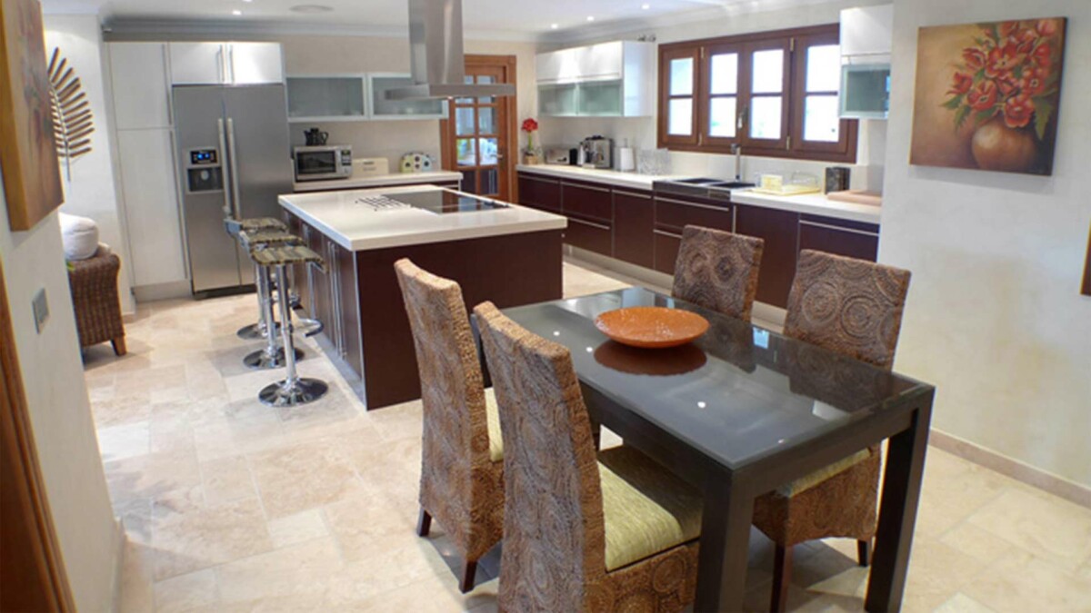 Each of the seven bedrooms is spacious and luxurious with a spectacular view. The property features 5 bedrooms in the main villa, plus 2 bedrooms in a fully independent luxury apartment. All villa bedrooms are large and luxurious, fully equipped with both air conditioning and handmade teak ceiling fans, dressing tables, comfortable seating, solid-wooden furniture and 32″ LED HD TV’s with 140 satellite channels.