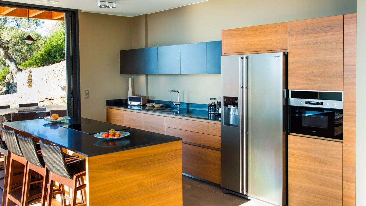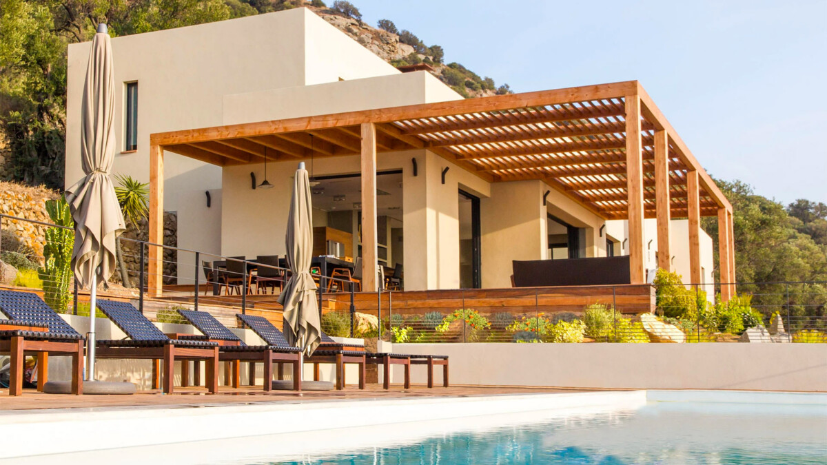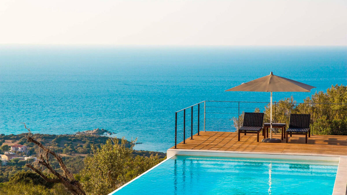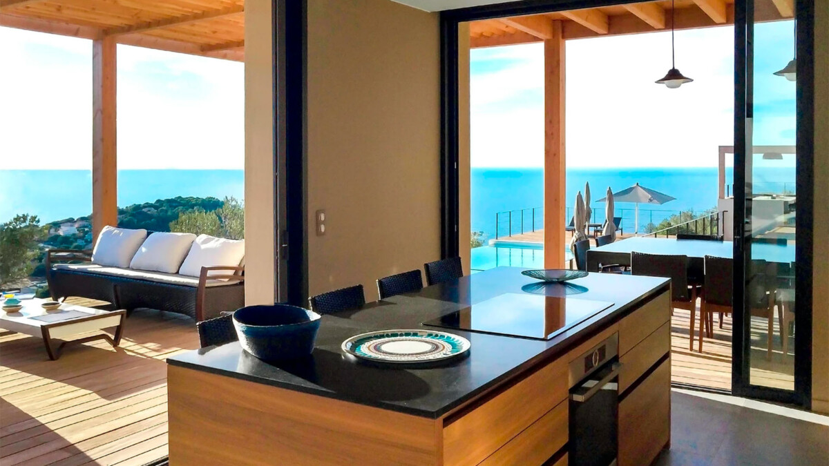 Les terrasses extérieures en teck qui filent autour de la maison rejoignent une grande piscine à débordement face à la mer invitant au farniente. Pour profiter de la quiétude du lieu, il vous suffira d’accéder au pool house équipé d’une cuisine avec plancha et barbecue.