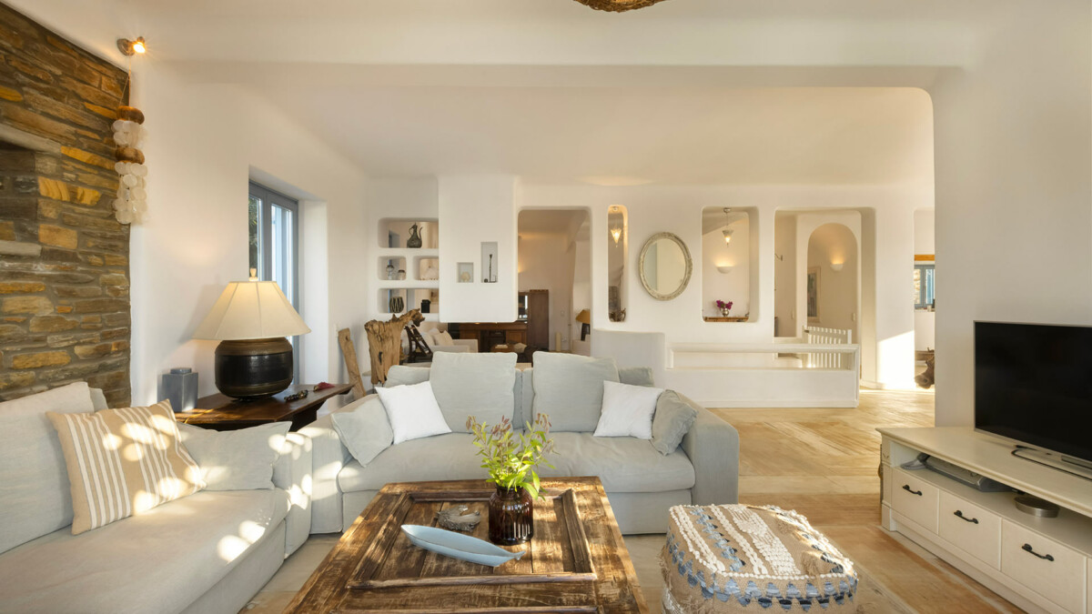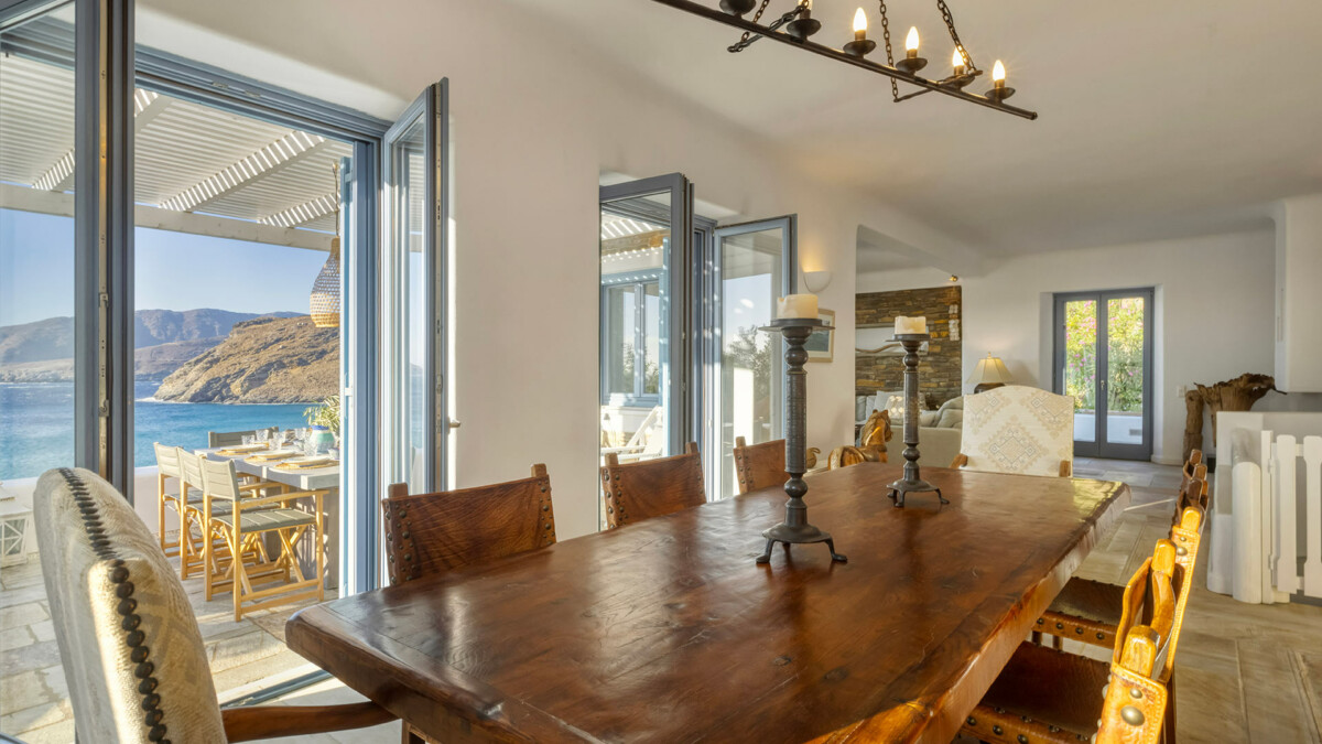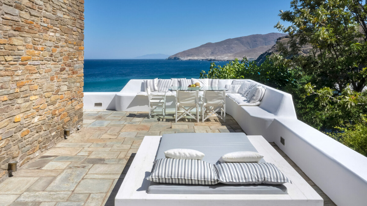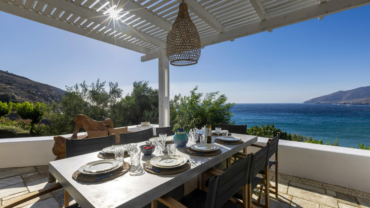 La villa se trouve sur la côte Est d’Andros, île grecque de l’archipel des Cyclades en mer Égée.