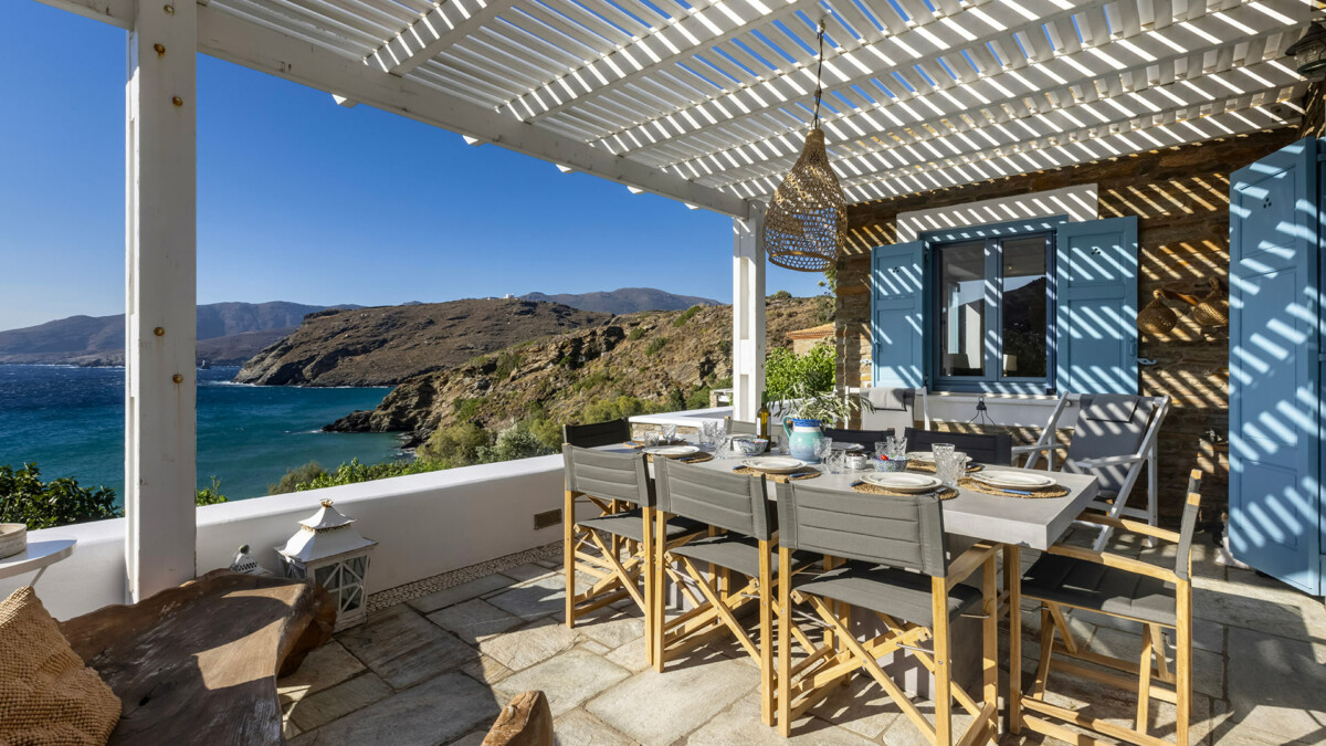 La Villa Sémélé est une charmante demeure de bord de mer, située sur la côte Est de l’île d’Andros en Grèce. Avec sa belle terrasse et sa splendide vue sur mer, cette propriété est idéale pour un charmant séjour en famille ou entre amis.