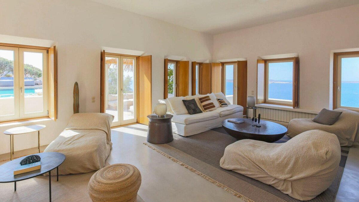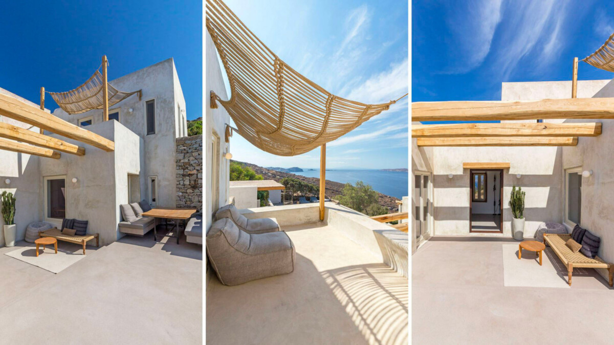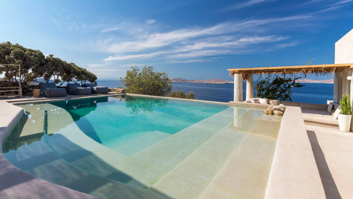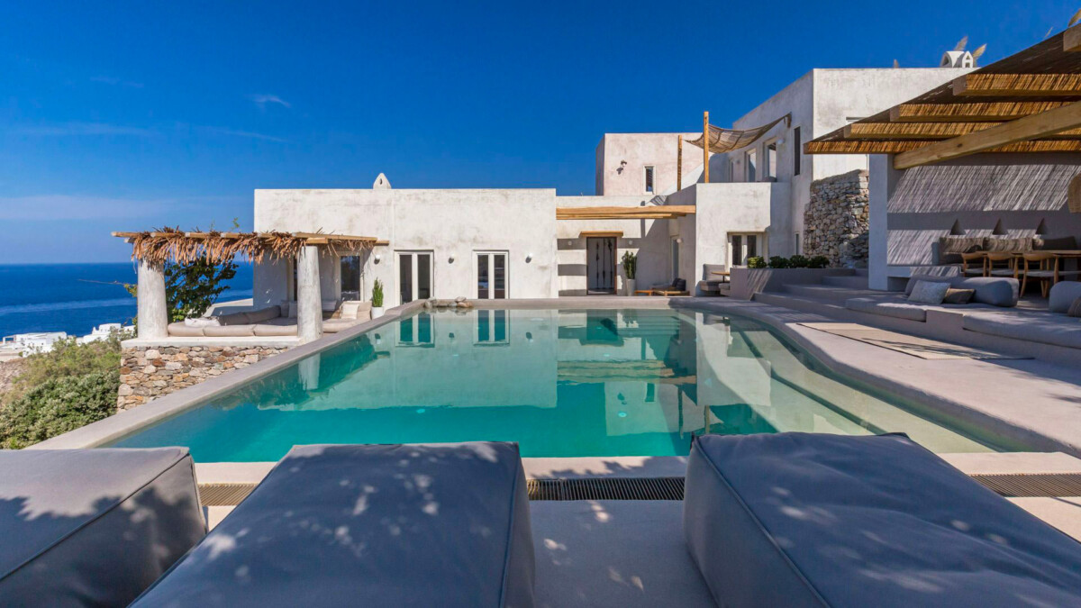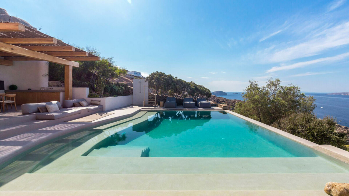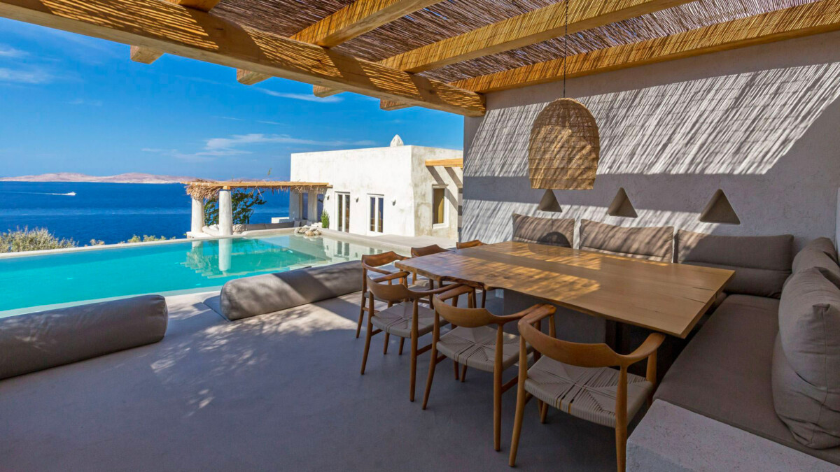 Its elevated position allows for exceptional views stretching out over the Aegean sea, including the islands of Delos and Rhenia – while also ensuring a peaceful location that grants access to the Southwestern beaches and Chora within reasonable time.