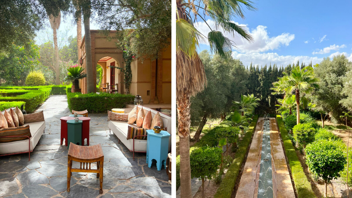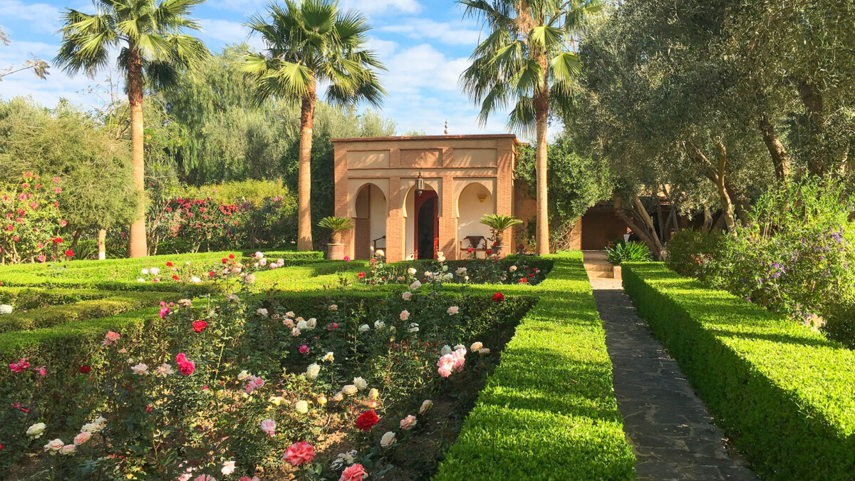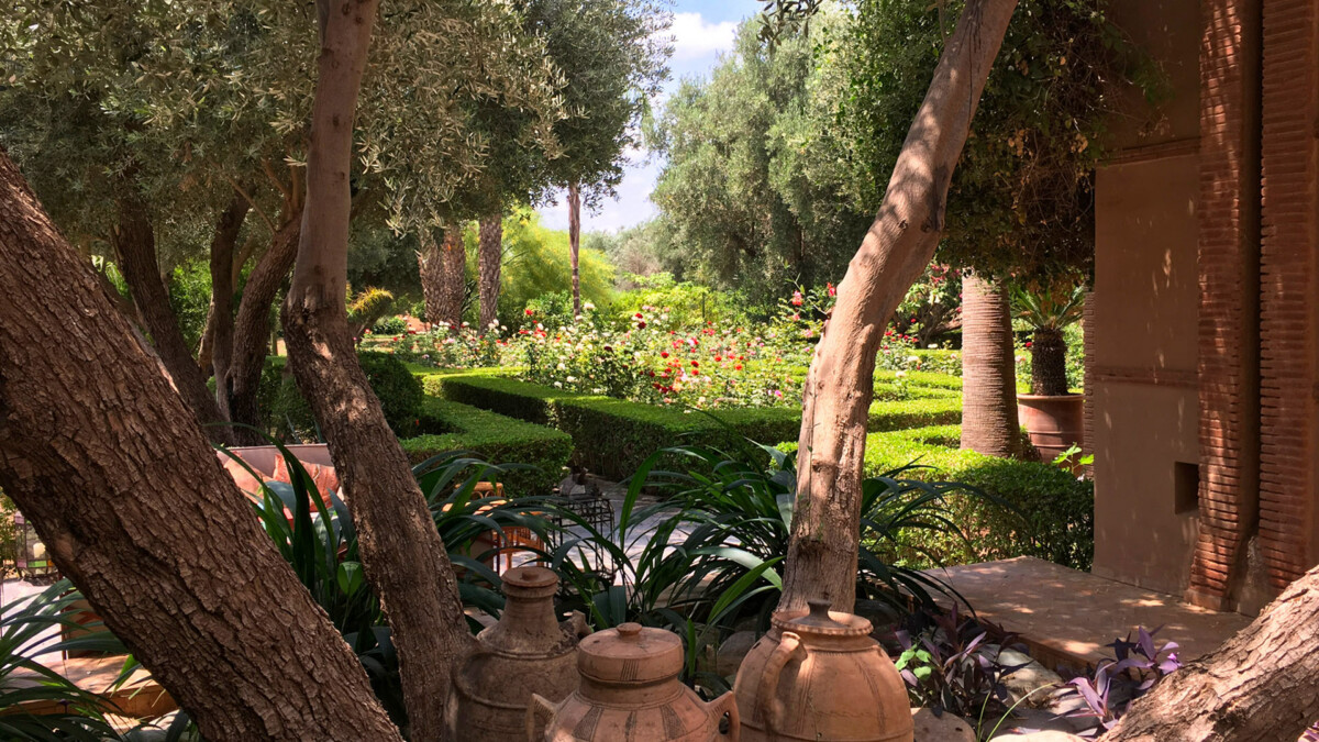 Le magnifique jardin de la propriété a été pensé et réalisé avec soin, par le père des propriétaires actuels, grand amoureux de la nature. Arpentant le Maroc, et d’autres pays, il a en effet rassemblé et planté une multitude de variétés de fleurs, d’agrumes et d’arbres aux senteurs enivrantes, qui font la luxuriance du jardin (jacarandas, flamboyants, plumbago, bougainvilliers, oliviers, orangers, mandariniers, citronniers, cédrats, poivriers, pamplemoussiers, jasmin, roses).