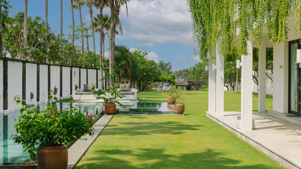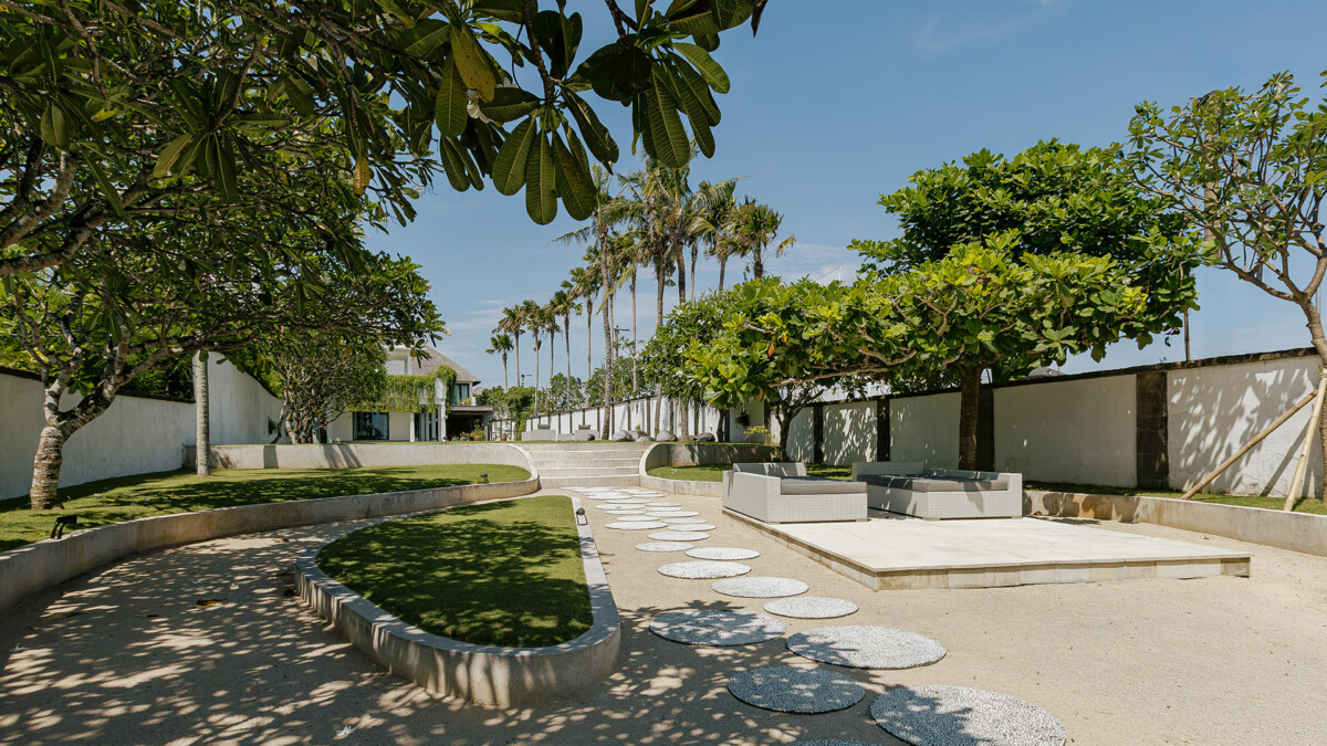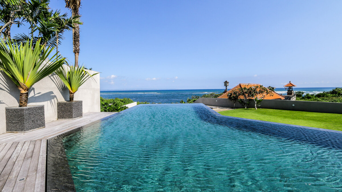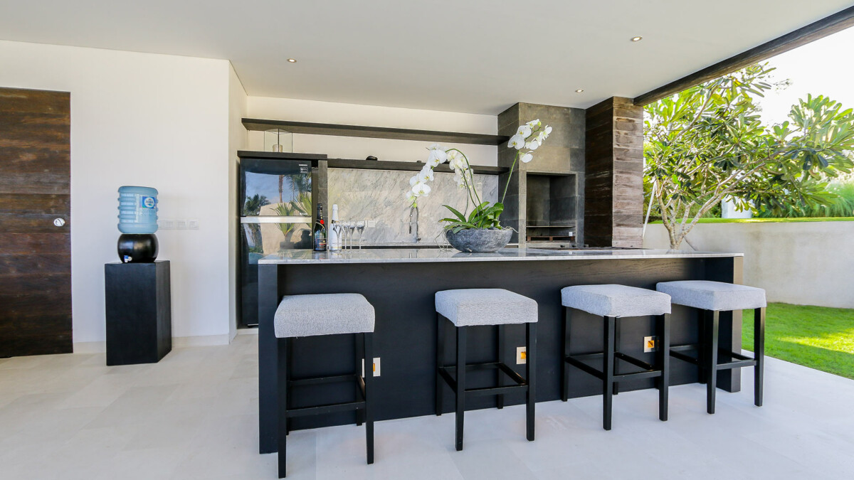 Les extérieurs invitent à la détente avec deux grandes piscines à débordement (18 m x 4 m, profondeur 1,5 m pour la piscine latérale, et 18 m x 6 m profondeur 1,4 m pour la piscine côté plage), un pavillon de plage avec un espace repas et un coin salon, un bar extérieur et un barbecue. La terrasse sur le toit offre une vue imprenable sur la mer, et un accès à la mer privé direct vous invite à de nombreuses baignades.