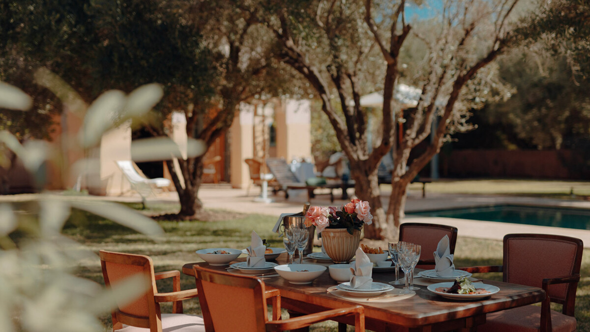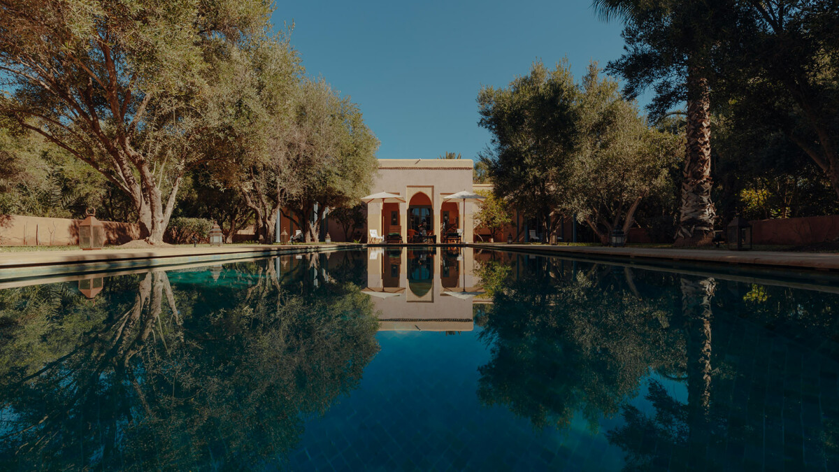 Les jardins luxuriants, riches en oliviers centenaires et en palmiers majestueux, s’étendent sur 2 hectares, offrant une sensation d’isolement précieux. La piscine (de 15 x 4m – Profondeur : 0.7 à 1.4m) est chauffée toute l’année et vous invite à la baignade à toute heure. Les belles terrasses permettent de savourer d’exceptionnels moments de convivialité avec vue sur les montagnes de l’Atlas.