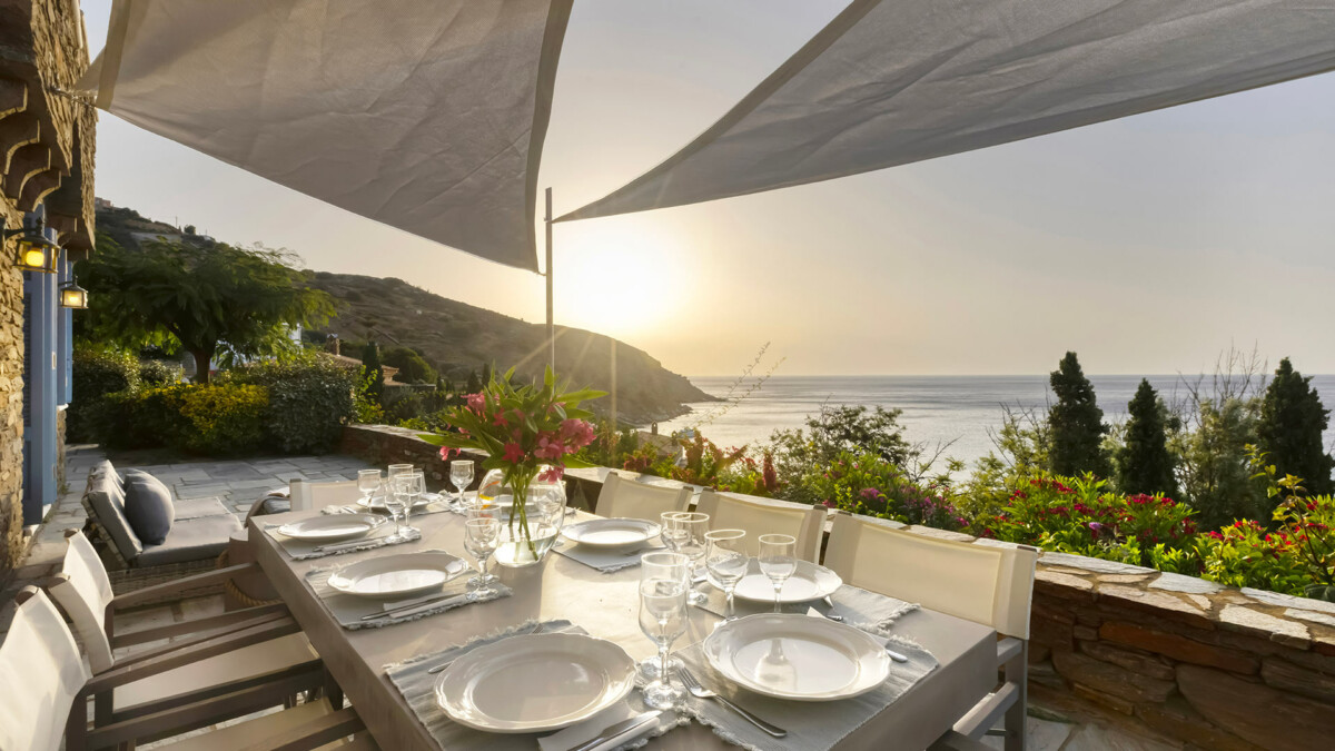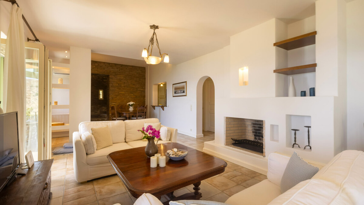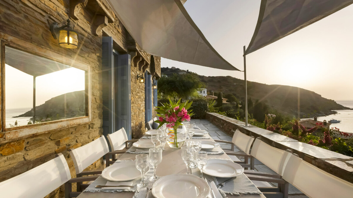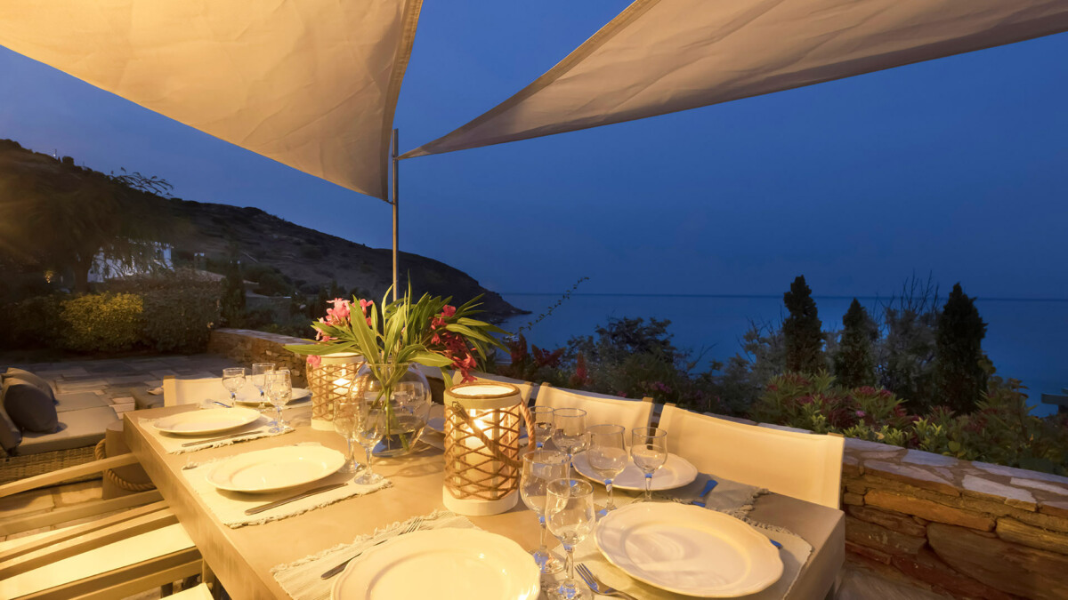La villa se trouve sur la côte Est d’Andros, île grecque de l’archipel des Cyclades en mer Égée.