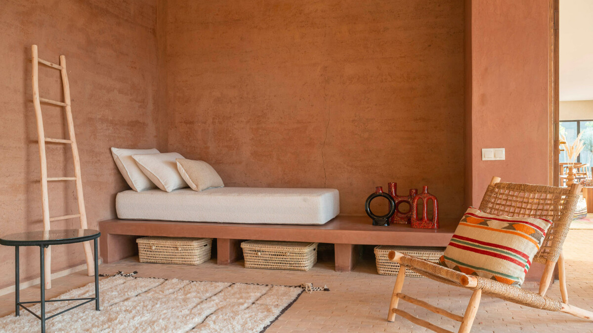 The villa is located in a Douar, a small village right in the middle between the city of Marrakech and the foot of the Atlas Mountains.