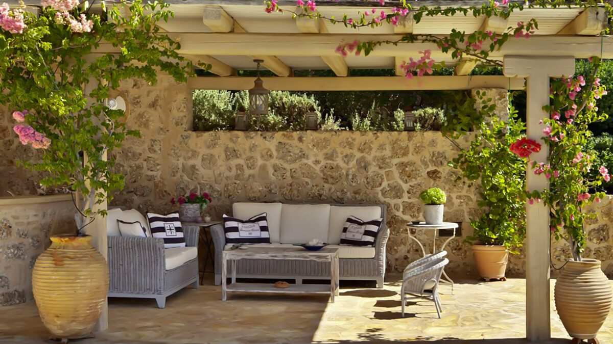 Le style sophistiqué de la villa reflète le goût exclusif des propriétaires, qui baignent dans l’ar et les antiquités depuis trois générations. Les espaces d’habitation sont élégants et spacieux. Les grandes pergolas entourent la maison et fournissent de l’ombre pour les repas en plein air et pour le salon extérieur adossé à la piscine.