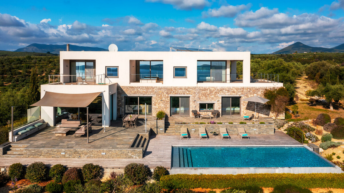 Niché entre les villages pittoresques de Pyla et Gialova dans le sud-ouest du Péloponnèse, la Villa Théalis se dresse comme un joyau d’architecture moderne au milieu d’une vaste oliveraie. À seulement 10 km du port charmant de Pylos, cette demeure offre une vue imprenable sur la baie emblématique de Navarino, promettant des couchers de soleil à couper le souffle différents chaque soir. Conçu pour allier luxe, confort, et sérénité, ce refuge d’exception vous offre intimité, pour un séjour au cœur de la nature d’une région riche en histoire et en paysages magnifiques. Cette propriété avec piscine est une véritable invitation à vivre une expérience unique où luxe, calme, et volupté se mêlent harmonieusement au cadre majestueux de la Messénie.