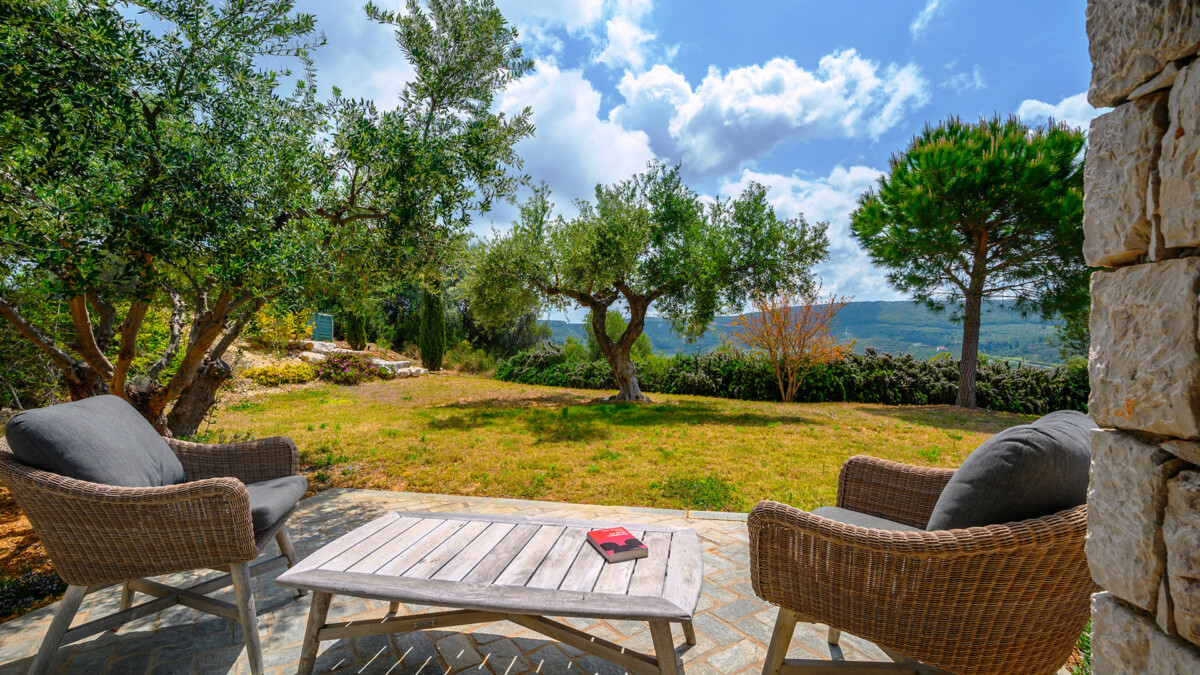 La villa bénéficie d’une localisation privilégiée à 45 minutes de l’aéroport de Kalamata et à 3 heures de celui d’Athènes.