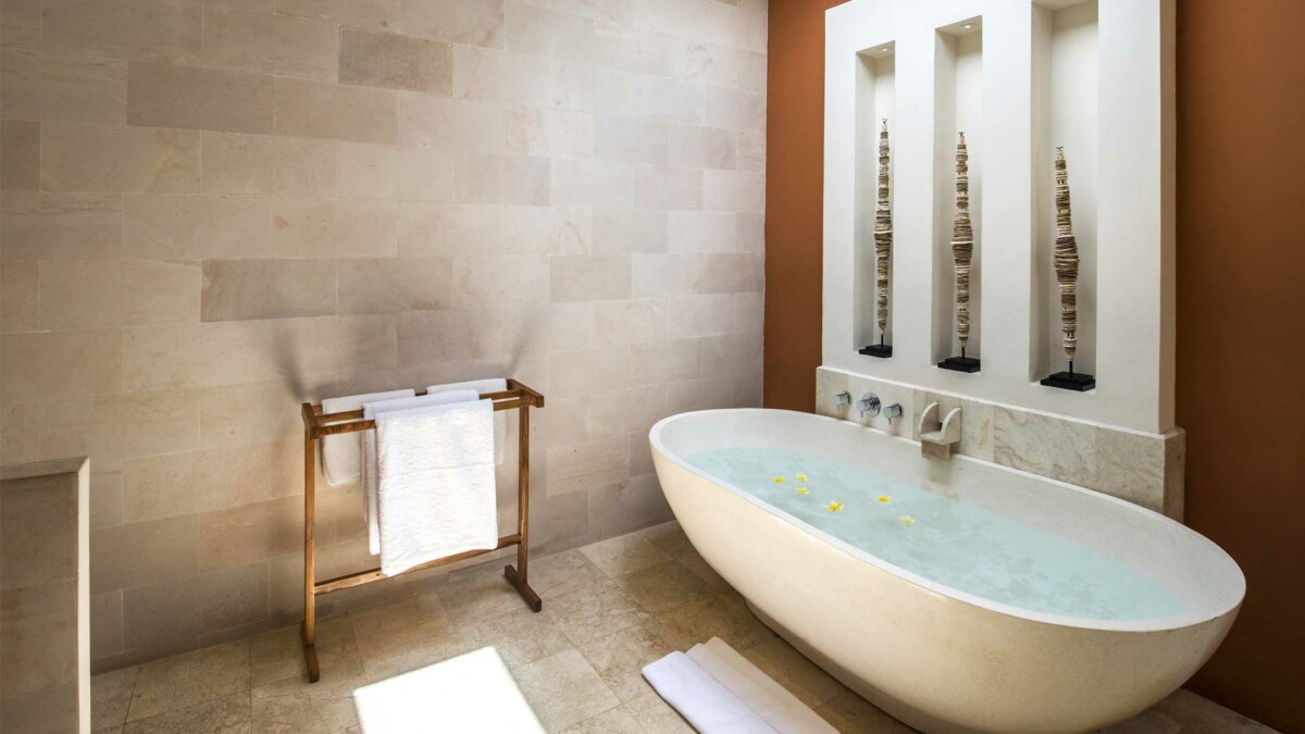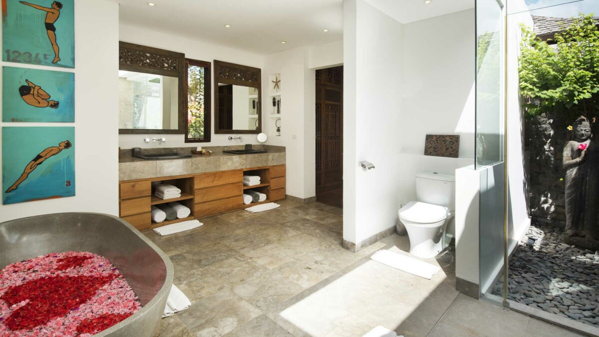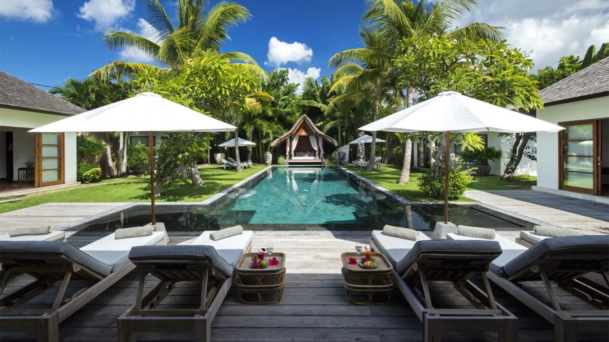 La villa dispose d’un total de sept chambres qui se présentent sous la forme de bungalows symétriques entourant la piscine. Il n’y a qu’une seule suite Master. Il a une Dressing Room qui se connecte à la salle de bain avec une douche et une baignoire.