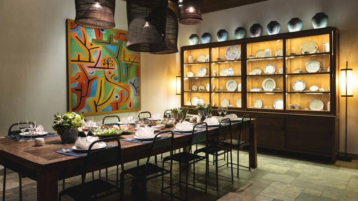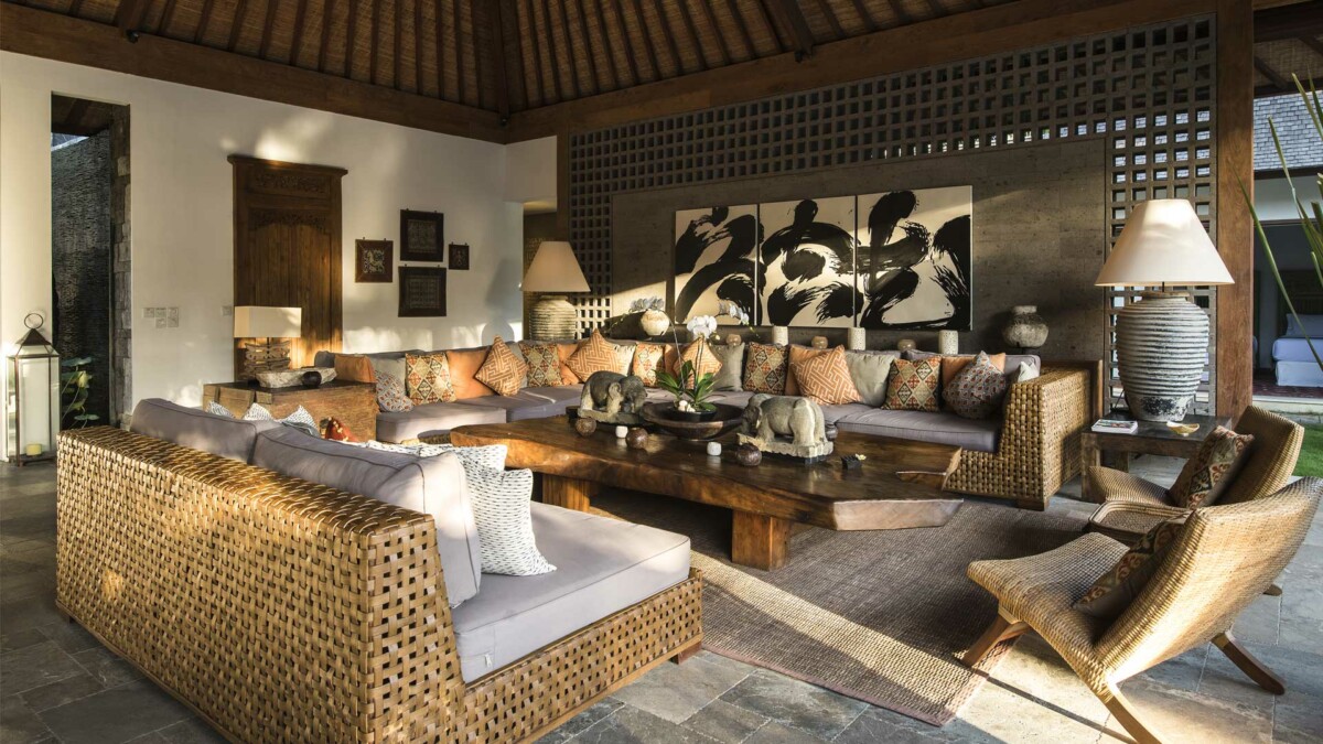 Un pavillon ouvert et spacieux abrite le salon où vous pourrez vous détendre autour de canapés et chaises. Pour vous divertir vous pouvez vous retirer dans la salle de télévision. Installez-vous confortablement et faites votre choix parmi le large choix de DVD, livres et jeux de société. À proximité se trouve la salle à manger avec sa longue table à manger pour dix où vous pourrez déguster et savourer les délicieuses recettes du chef de la villa.