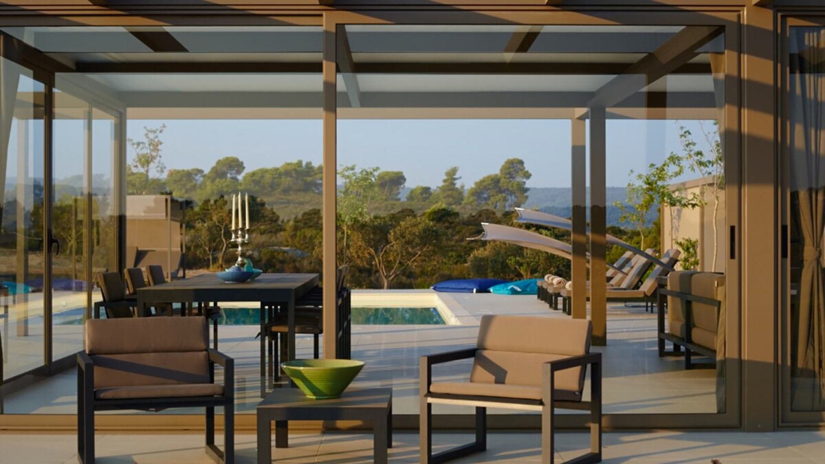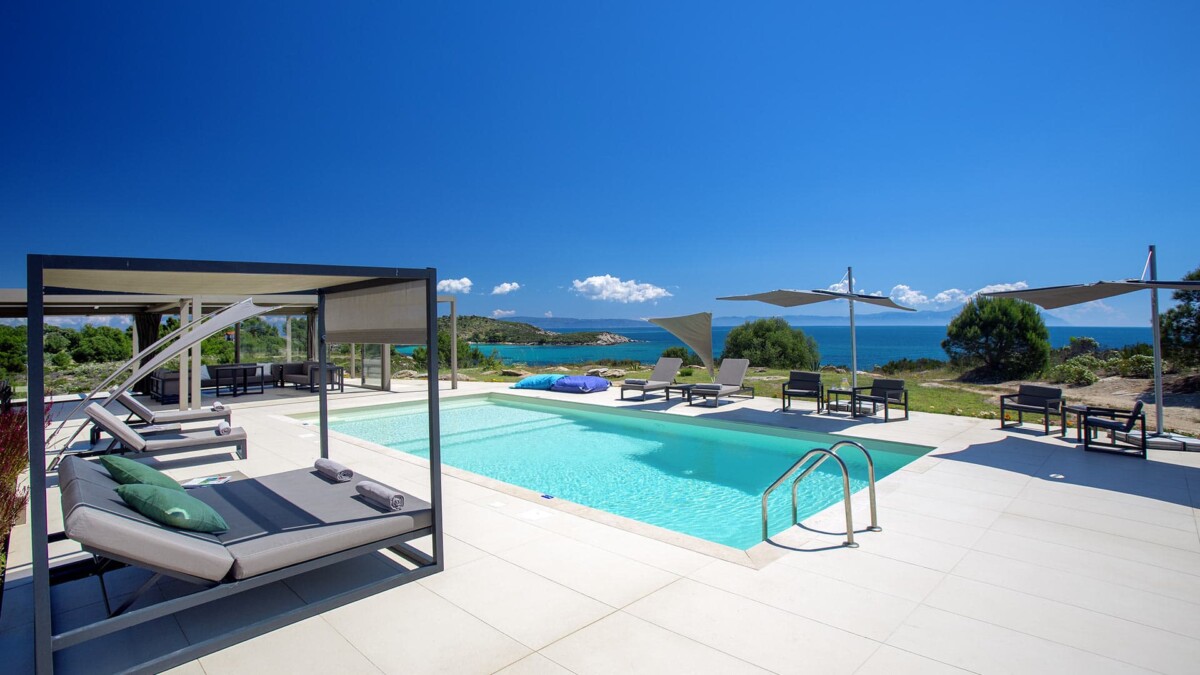 Piscine de 50 m2, espace bar entièrement équipé, pergola de massage, deux espaces de restauration, terrasse avec coin salon, balcons, chaises longues, parasols, barbecue, parking (sur l’île, sur le continent, dans un espace de stationnement privé et sécurisé).