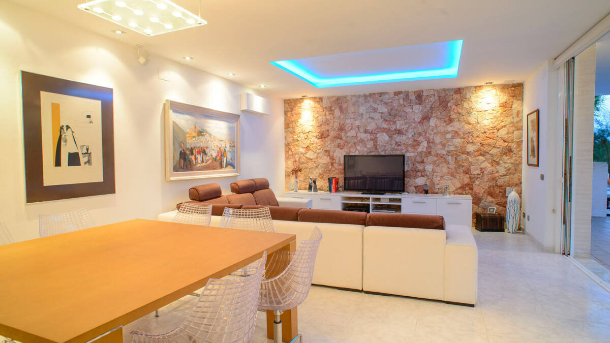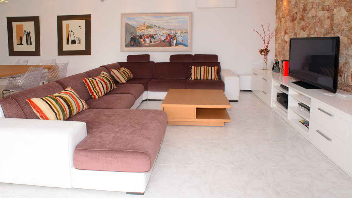 Grand salon-salle à manger avec table pour 8 personnes, TV plasma avec TDT (chaînes espagnoles + internationales), home-cinéma, chaîne hi-fi et WIFI.