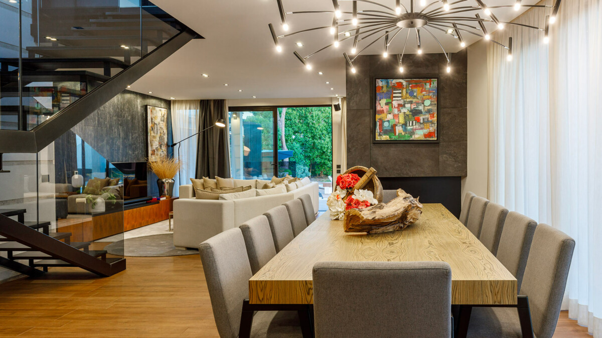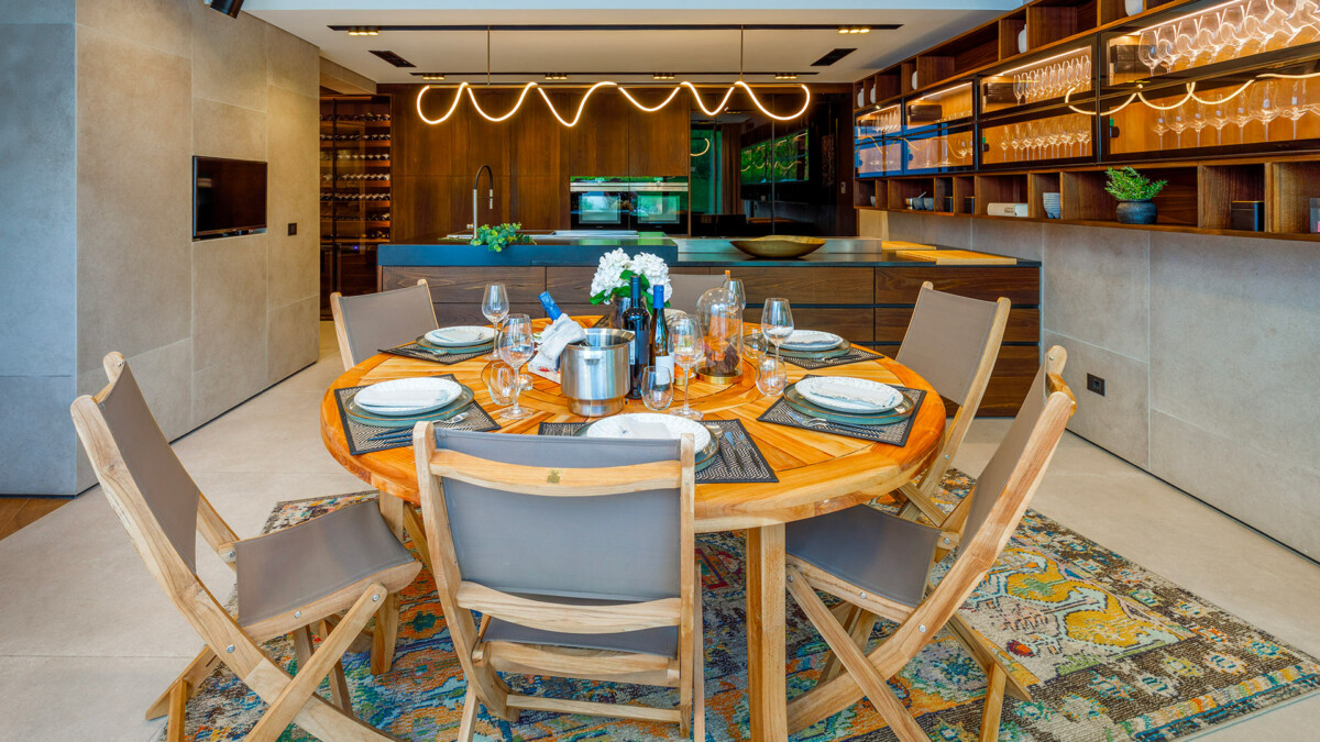 La Villa Treina séduit par son design contemporain et son agencement spacieux. La maison présente une disposition à plan ouvert avec des espaces de vie formels et informels, parfaits pour recevoir des invités dans une atmosphère conviviale. La cuisine de chef ouverte, parée de bois de noyer brûlé et de granit noir du Zimbabwe, est équipée des meilleurs appareils électroménagers. Adjacent à cette cuisine, une cave à vins et un bar à gin ajoutent une touche sophistiquée pour des moments de détente et de plaisir.