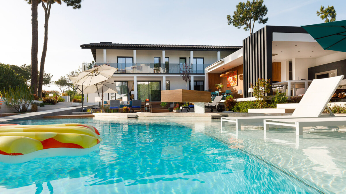 Au rez-de-chaussée, vous trouverez deux chambres : une avec un lit Queen-size et l’autre équipée de quatre lits superposés simples, parfaite pour les enfants. Un salon doté d’un coin détente et d’une zone TV, une cheminée et une salle à manger s’ouvrent sur le jardin et la piscine grâce à de grandes portes-fenêtres en verre. À l’étage, trois suites bénéficient d’un accès à un balcon, ainsi que d’un spa et d’une salle de cinéma maison. Deux terrasses supplémentaires, exposées à l’est et à l’ouest, offrent des espaces de détente en plein air.