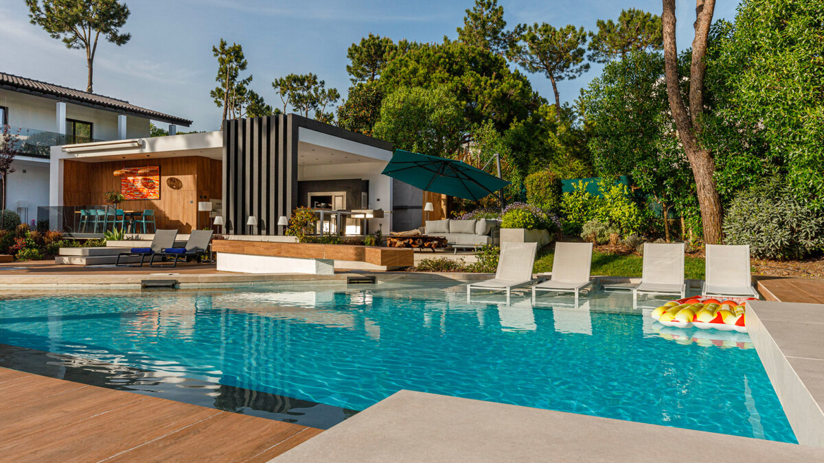 Les extérieurs de la Villa Treina sont conçus pour maximiser les plaisirs du plein air. Un jardin luxuriant entoure une piscine chauffée, traitée au sel, qui comprend également un système de nage à contre-courant.