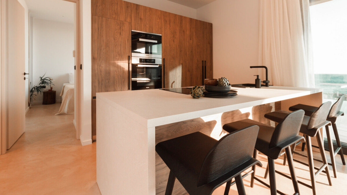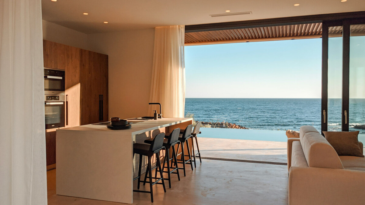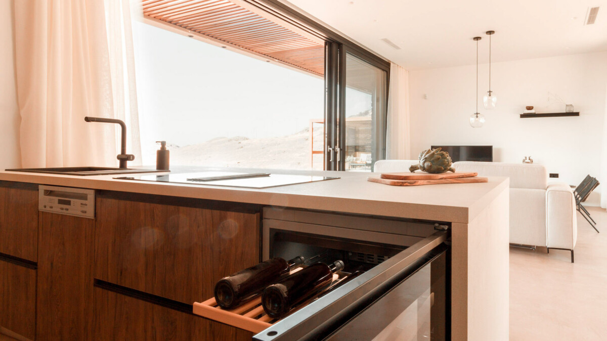 Une palette de couleurs apaisantes caractérise l’intérieur, le mobilier naturel, le design et des pièces d’art uniques comme des objets en céramique gardent l’espace moderne mais confortable. L’intérieur de la maison reflète une attention méticuleuse à chaque détail, quelques touches artistiques minimales apparaissent et les meubles triés sur le volet améliorent une vie de luxe sans effort. Le salon lumineux et aéré de la villa est un espace ouvert qui crée une connexion transparente avec la cuisine entièrement équipée.