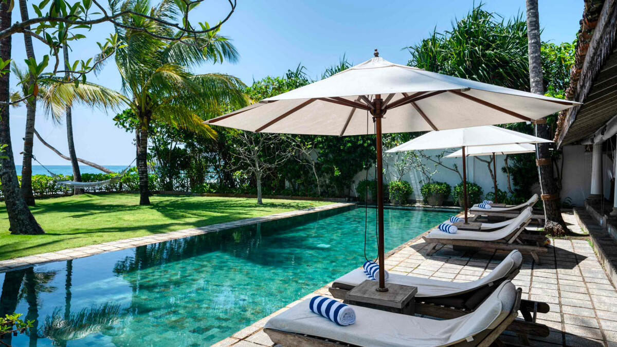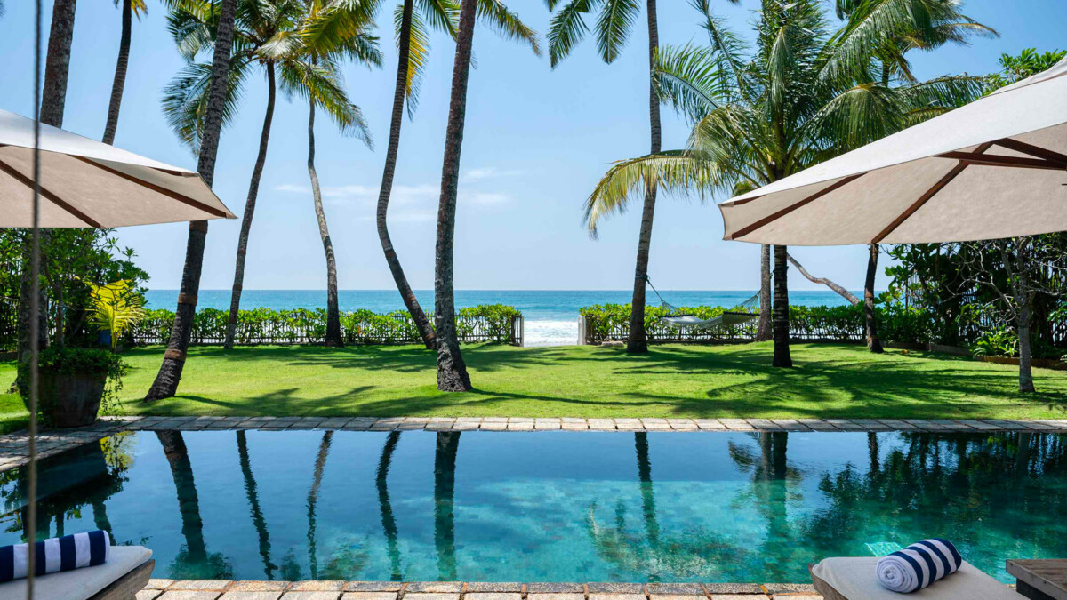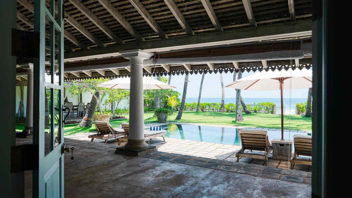 L’extérieur est tout aussi impressionnant que l’intérieur. La superbe piscine à débordement de 16×4 m se trouve au cœur d’un jardin tropical extraordinaire, avec un accès direct sur l’une des plus belles plages du Sri Lanka. Ses eaux calmes en font un lieu de baignade sûr en saison. La majestueuse terrasse, qui relie les différentes zones de la maison, offre une vue panoramique incomparable sur l’océan Indien et le jardin luxuriant.