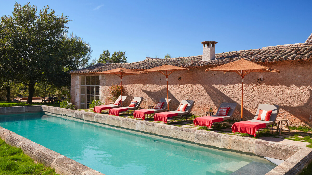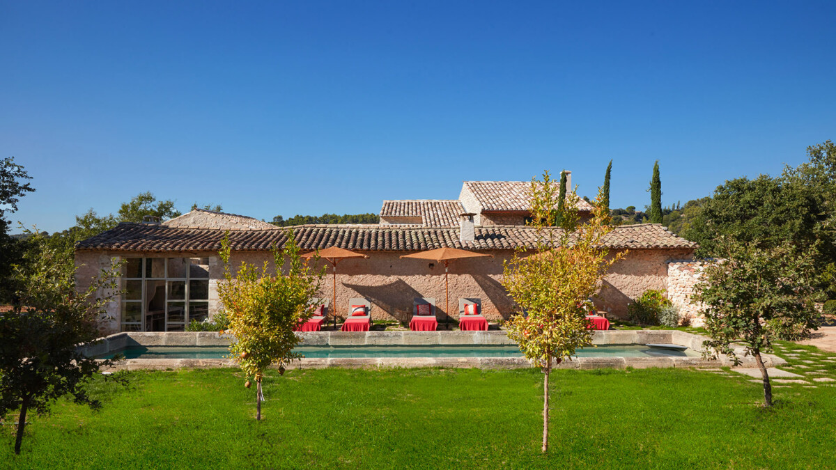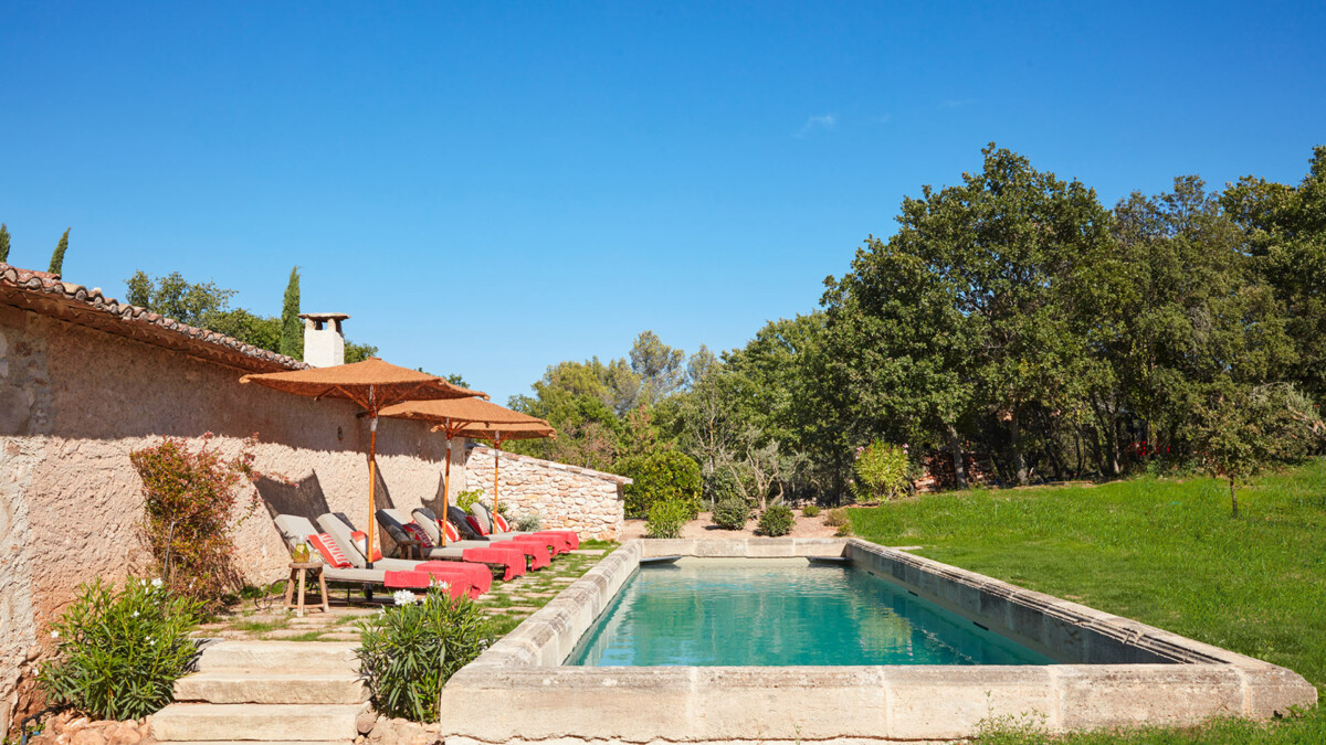 Vous pourrez ensuite vous prélasser au bord de la piscine façon vieux bassin, contre le mur de pierre planté de bougainvilliers, en profitant d’une vue sur le Luberon et en étant bercé par le chant des cigales.