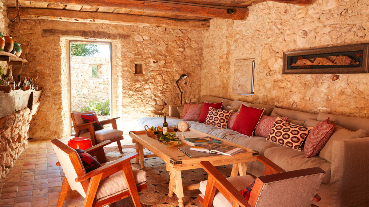 Vous pourrez également apprécier le salon, qui appellent à la simplicité et à la plénitude. Cette pièce est parfaite pour se retrouver autour d’un jeu de société ou pour prendre un verre avant le diner. Juste à côté, se trouve un autre petit salon vouté, avec des murs en enduits à la chaux couleur épeautre et un confortable canapé.
