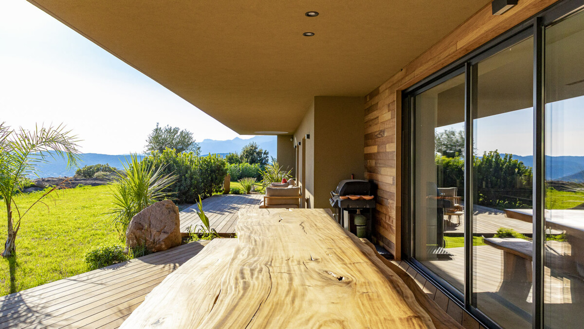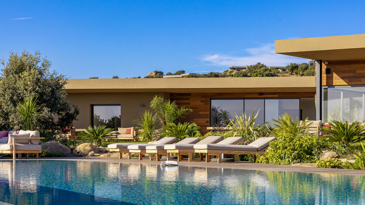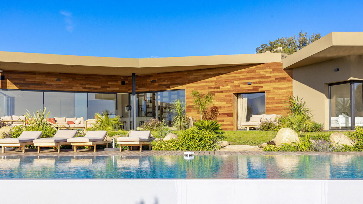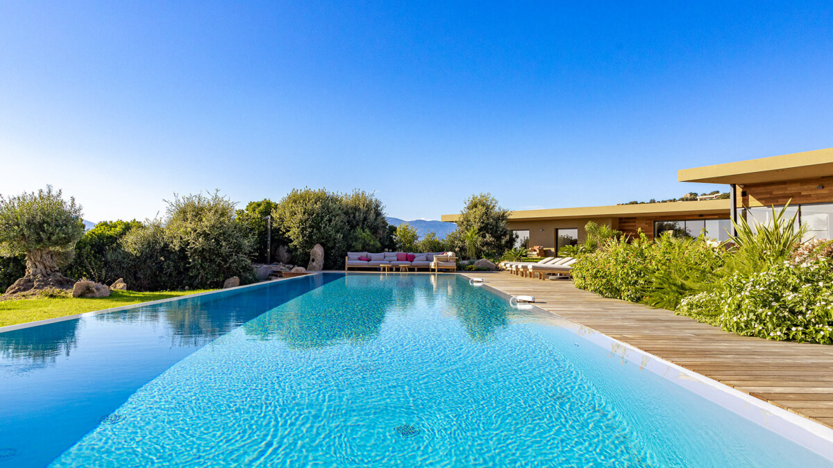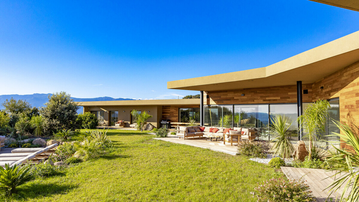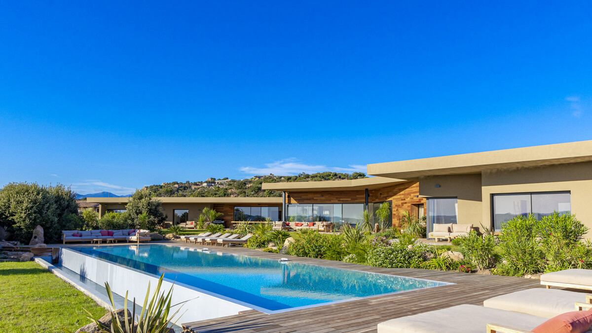 La Villa Vannina est une splendide maison moderne située sur le hauteurs de Palombaggia, près de Porto-Vecchio en Corse. Cette vaste demeure de 500 m2 dispose d’un grand jardin de 4 500 m2 et offre des vues spectaculaires. Avec ses 6 chambres, elle peut accueillir jusqu’à 12 personnes. C’est un endroit de séjour idéal pour de magnifiques vacances en Corse.