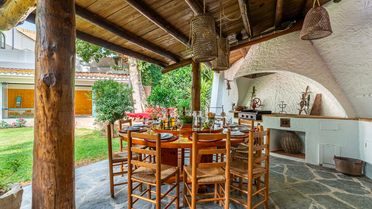 La propriété offre d’agréables espaces pour profiter du climat méditerranéen. La terrasse vue mer est un véritable havre de paix, idéale pour les repas en plein air avec une table prévue pour 8 personnes. Le jardin principal abrite également deux tables extensibles, chacune pouvant recevoir 10 convives. Ces espaces extérieurs sont parfaits pour admirer le panorama marin tout en savourant la douceur de vivre espagnole.