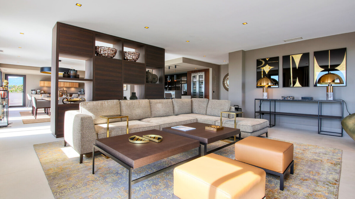It offers a large living room of 120 m2 (with lounge, dining room, bar, wine cellar, open kitchen