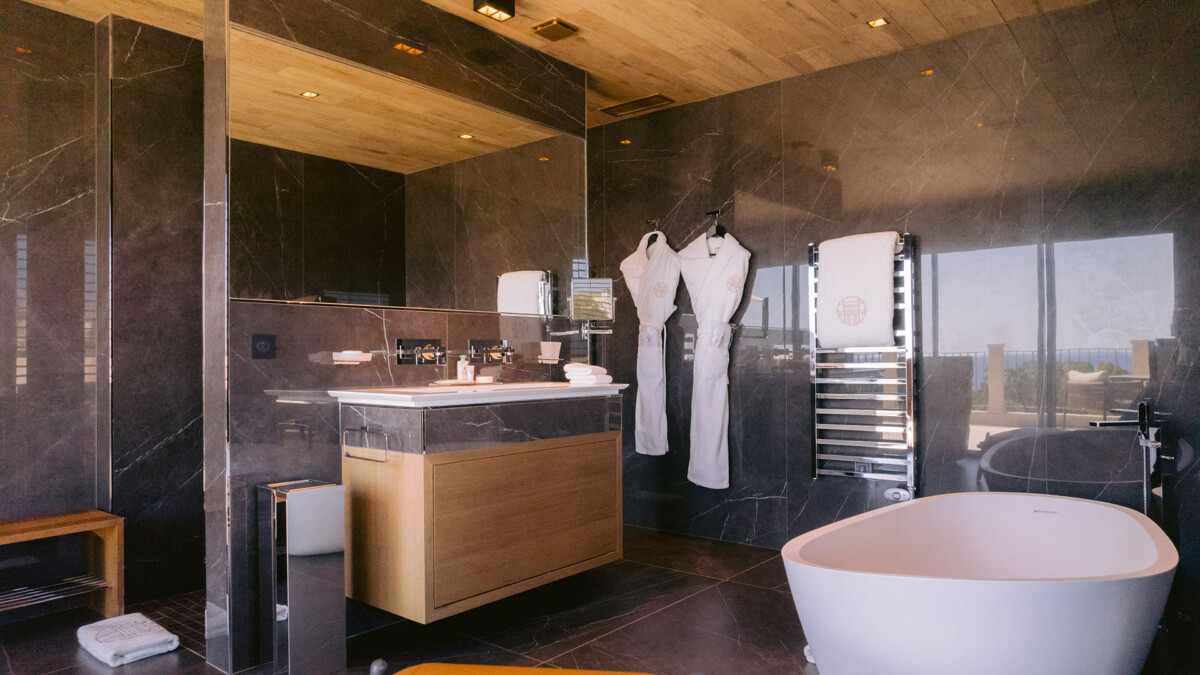 Room, 1st floor, view of the sea. This bedroom has 1 double bed King size. Bathroom private, with bathtub, shower. separate WC room. This bedroom includes also safe, dressing room, terrace with jacuzzi.