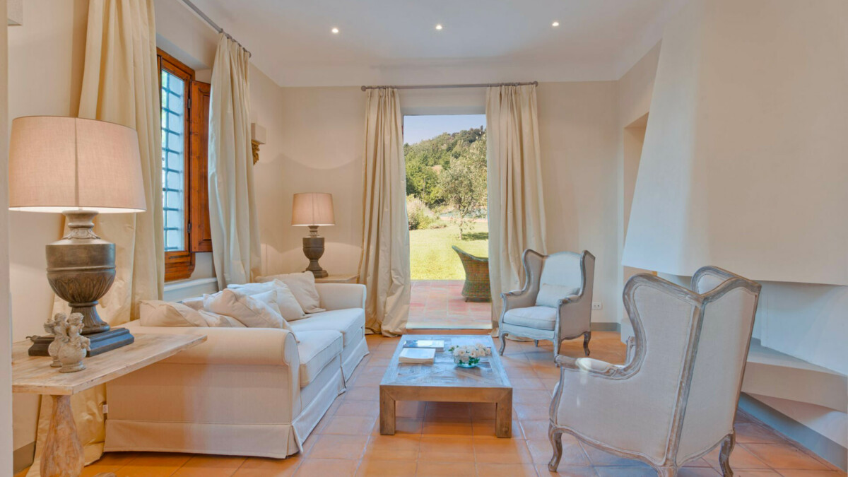 Villa Viti is set amongst a quintessential Tuscan landscape surrounded by rolling hills, groves of 120 olive trees and vineyards.