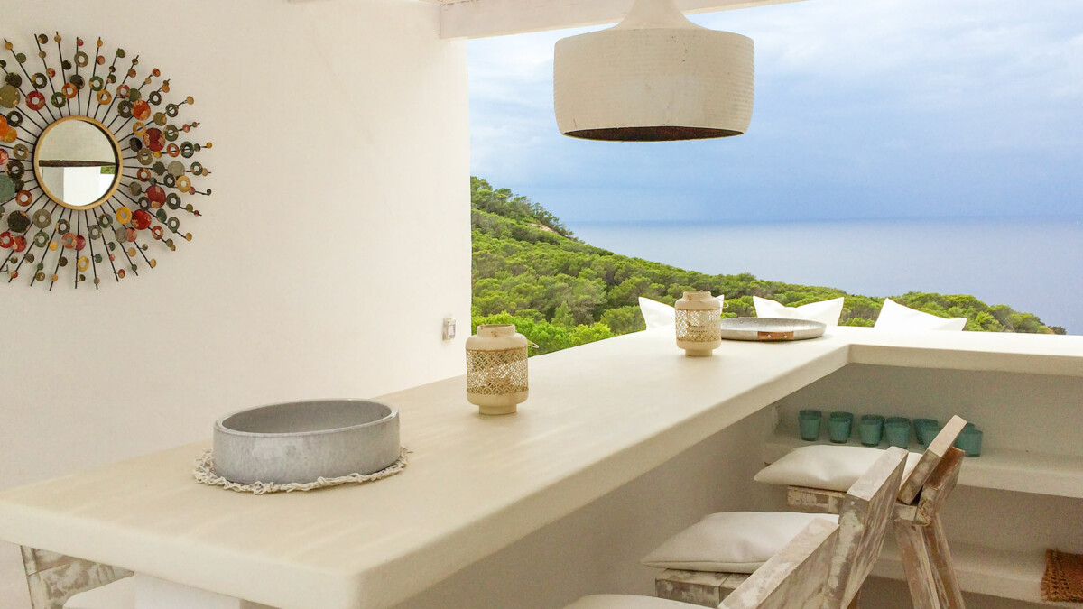 Grandes terrasses avec plusieurs endroits pour se prélasser sous le soleil d’Ibiza.
