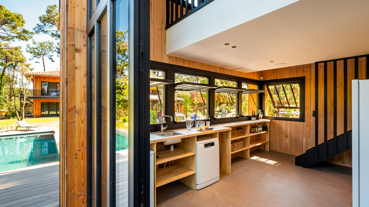 L’annexe offre un salon TV à l’étage pour des moments de détente en toute discrétion, ainsi qu’une cuisine d’été parfaitement équipée pour les repas en plein air et les moments partagés autour de la piscine ou du brasero.